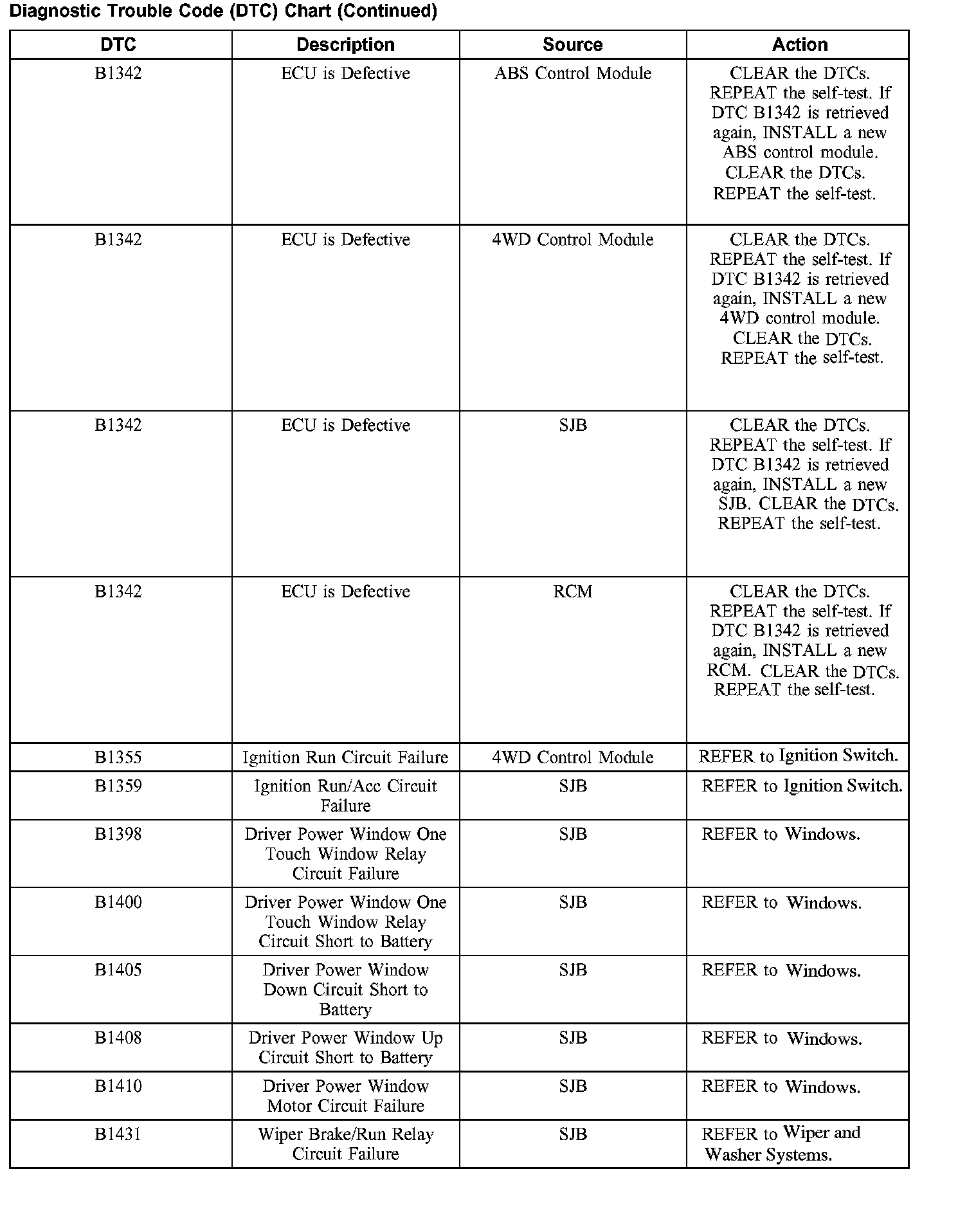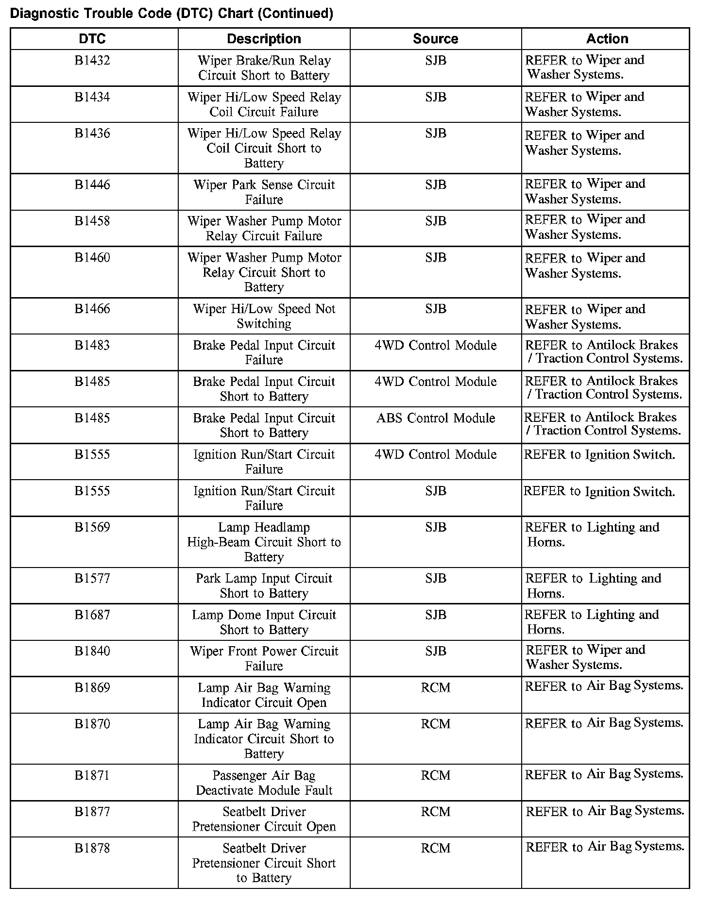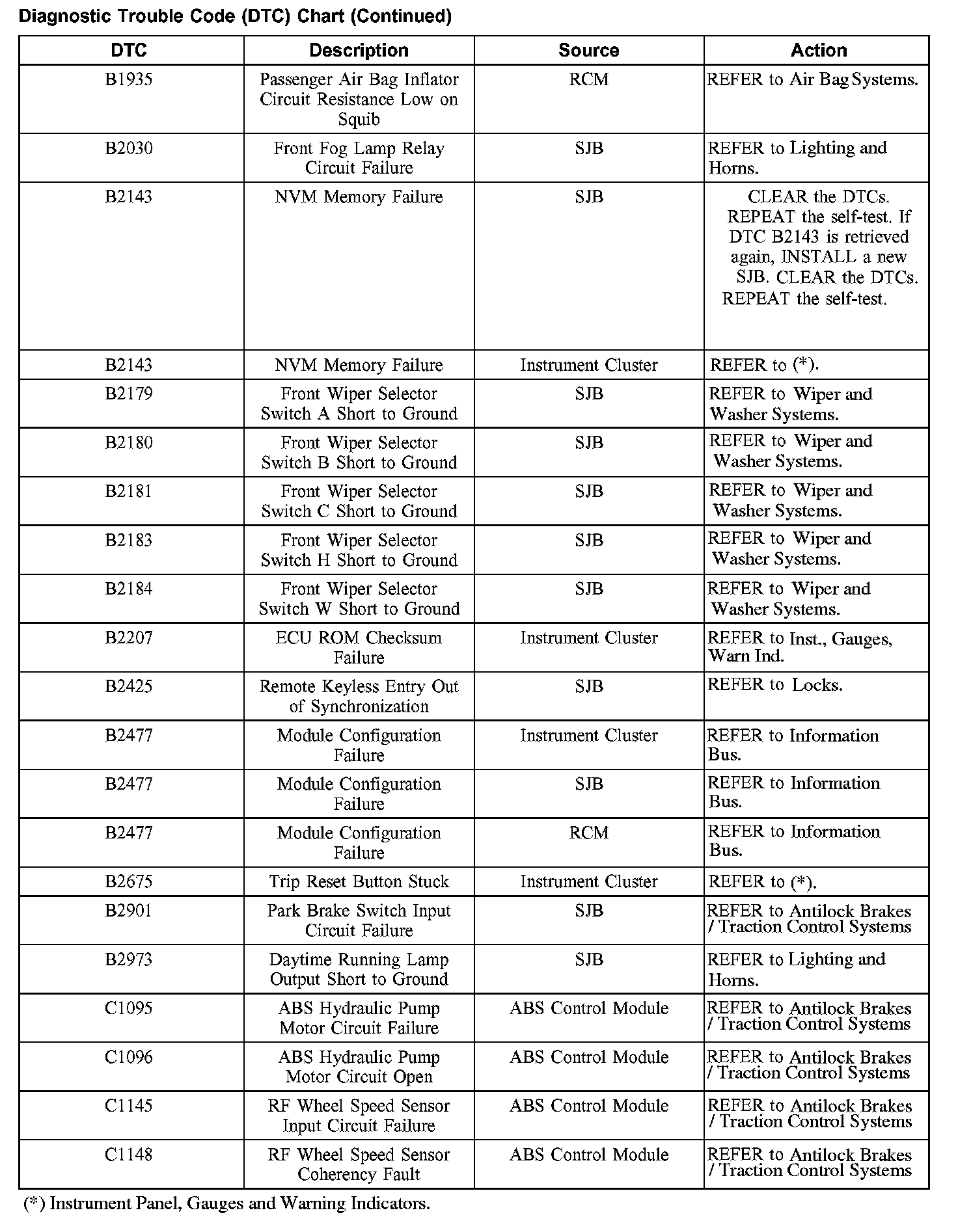 DIAGNOSTIC TROUBLE CODE (DTC) CHART