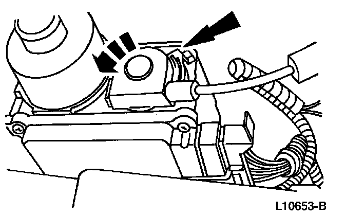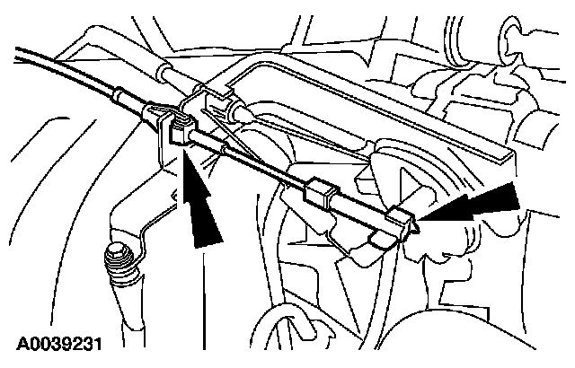 2. Press the locking tabs and separate the speed control cable from the intake manifold.