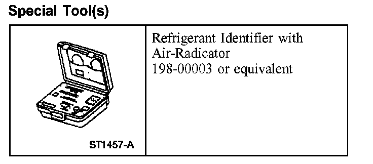 1. NOTE: An A/C refrigerant analyzer must be used to identify gas samples taken directly from the refrigeration system or storage containers prior to recovering or charging the refrigerant system.