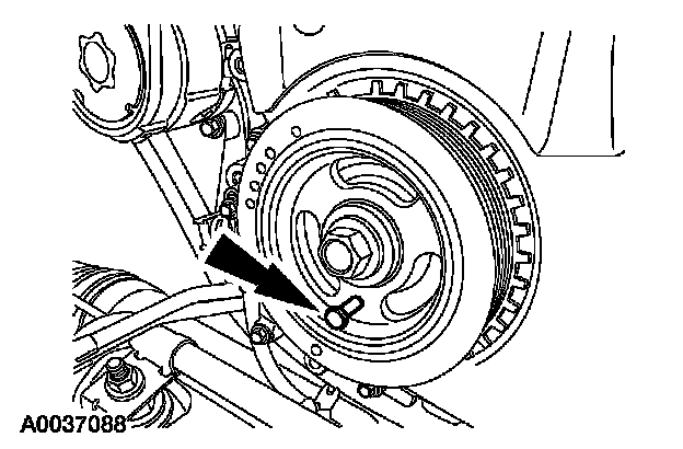 5. Install the special tool and turn the crankshaft pulley bolt to position the number one cylinder at top dead center.