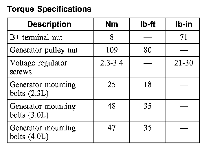 Torque Specifications: