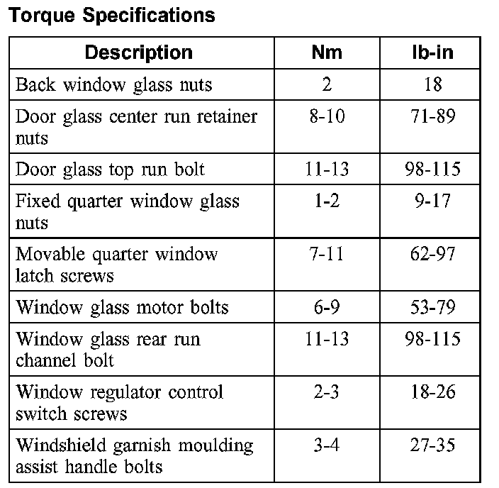 Torque Specifications: