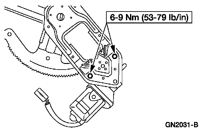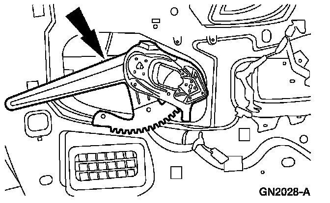 8. WARNING: Prior to the power window motor removal, ensure the regulator arms are in a fixed position to prevent counterbalance spring unwind. Failure to place the regulator arms in a fixed position can cause the spring to suddenly release resulting in personal injury.