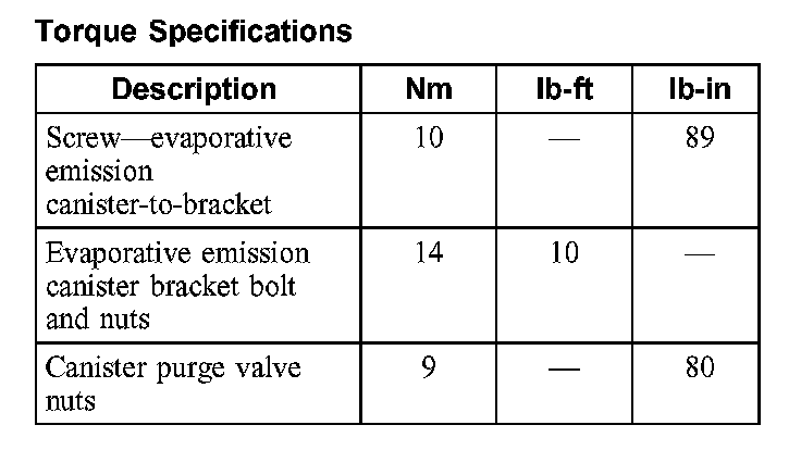 Evaporative Emissions System: Specifications