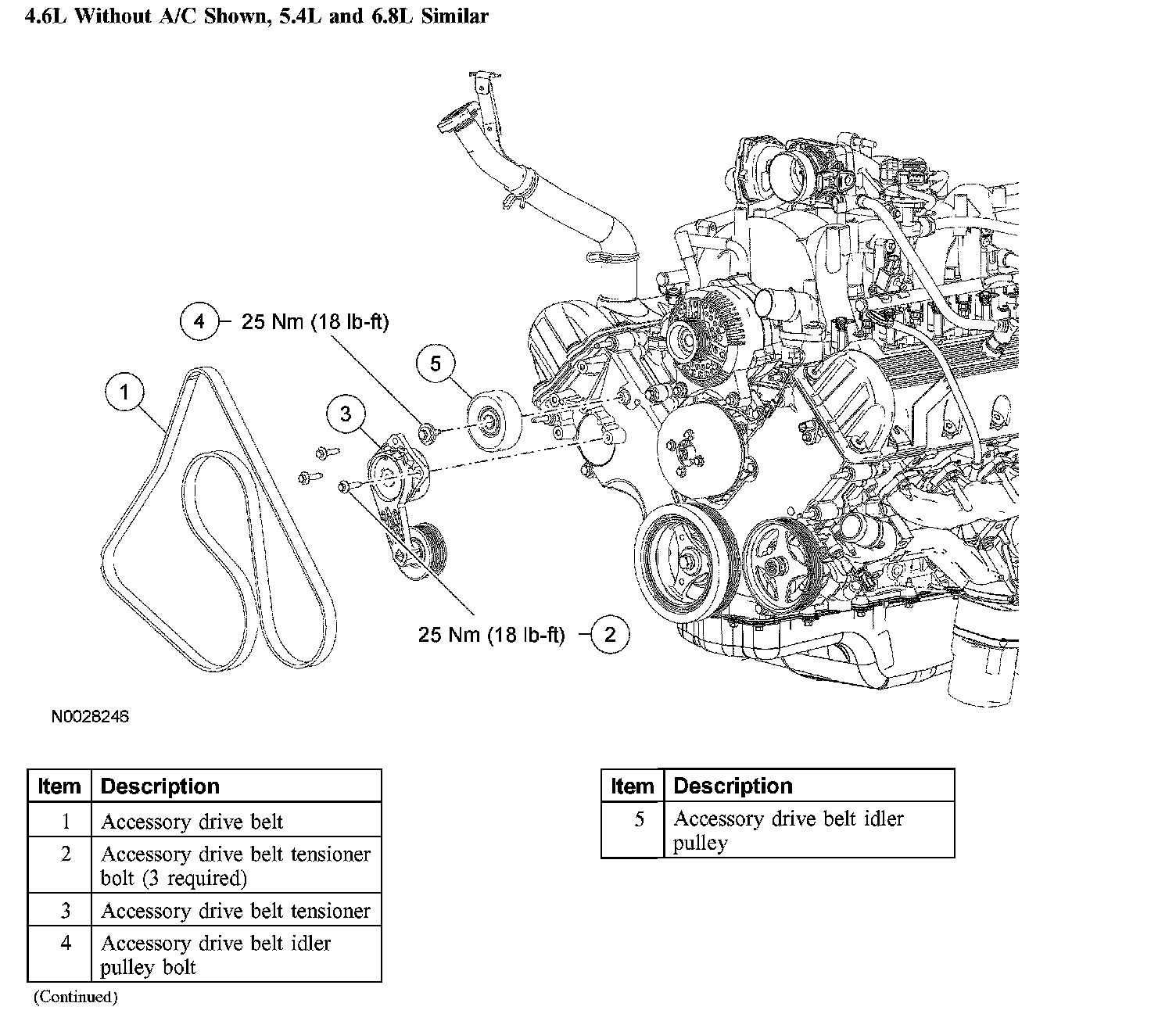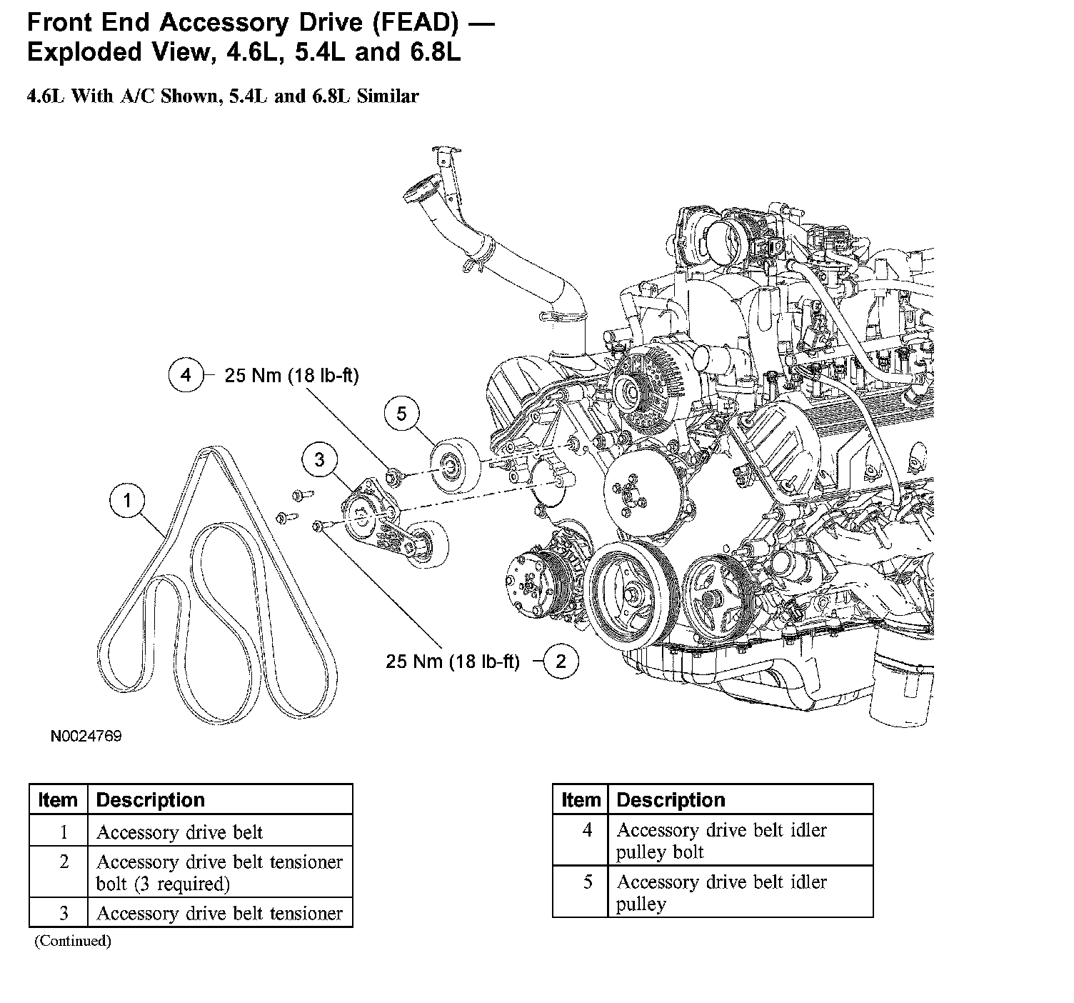 Front End Accessory Drive (FEAD) Exploded View, 4.6L, 5.4L and 6.8L Front End Accessory Drive (FEAD) Exploded View, 4.6L, 5.4L and 6.8L (4.6L With A/C Shown, 5.4L and 6.8L Similar):
