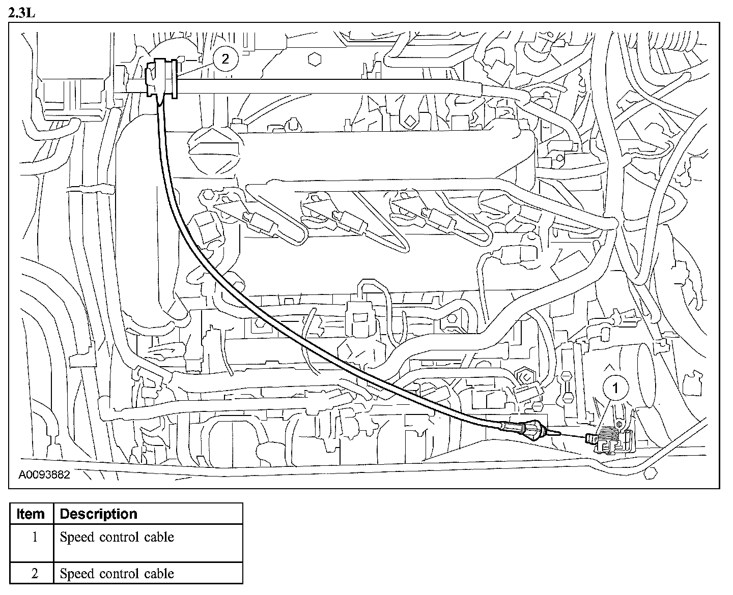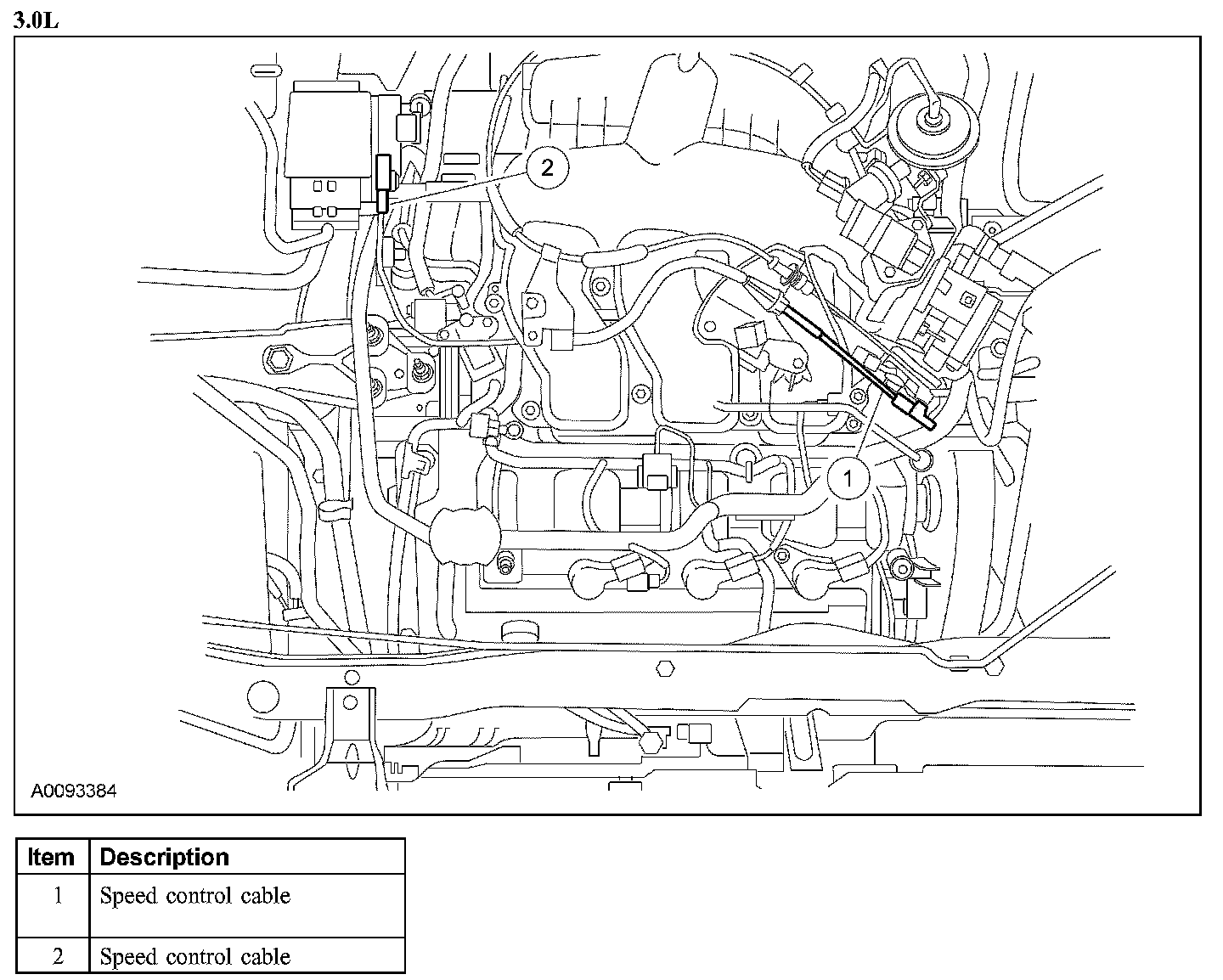 2. Disconnect the speed control cable from the throttle lever and accelerator cable bracket.