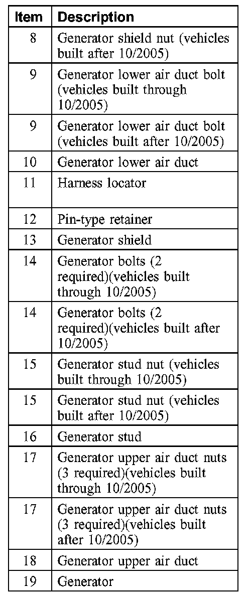 16. Remove the generator stud and position the generator aside to access the generator upper air duct nuts.
