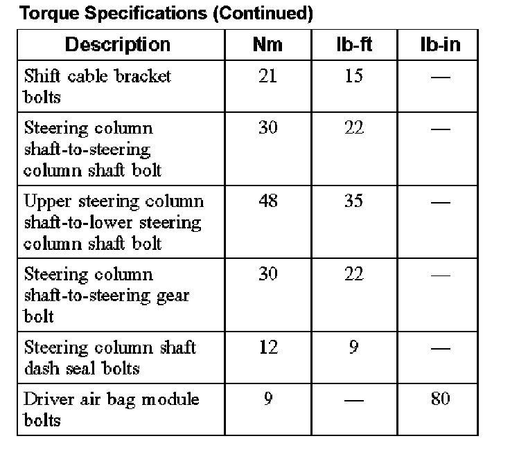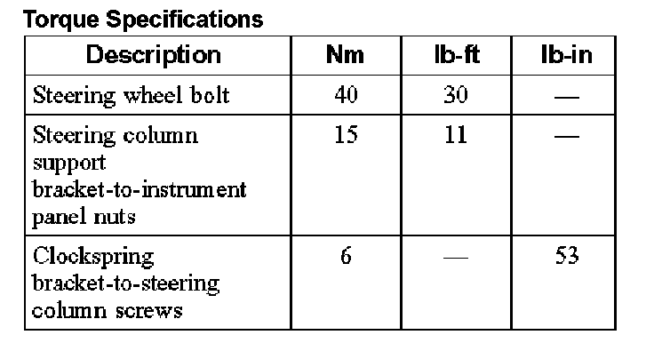 Torque Specifications: