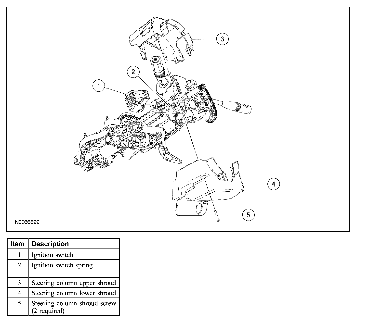 ^ Make sure that the spring located under the ignition switch is positioned on the steering column lock rod.
