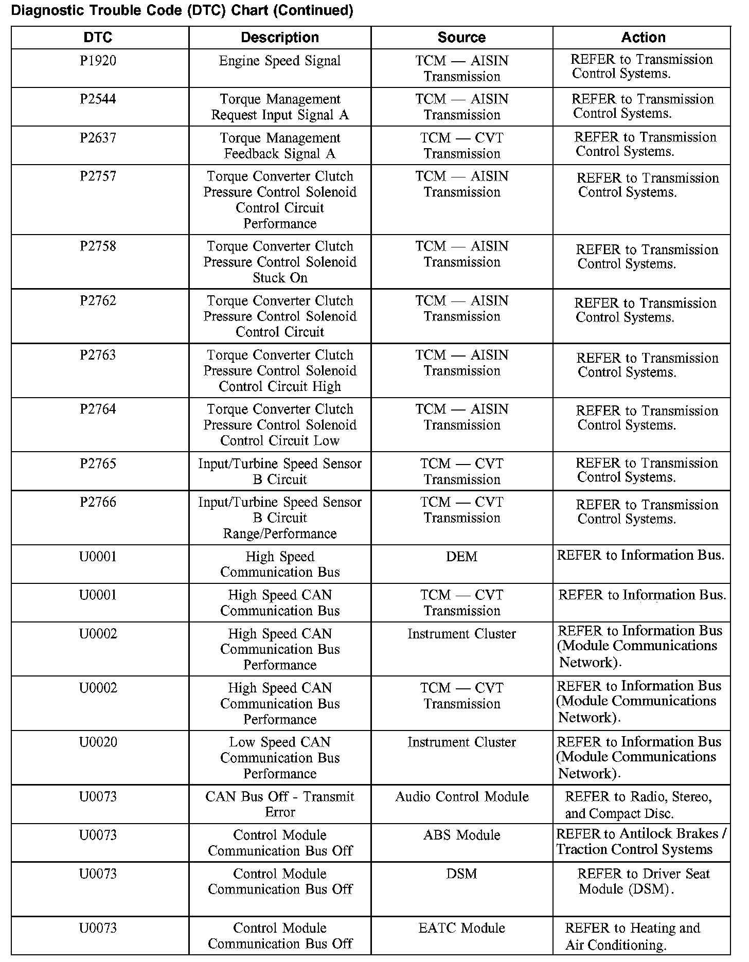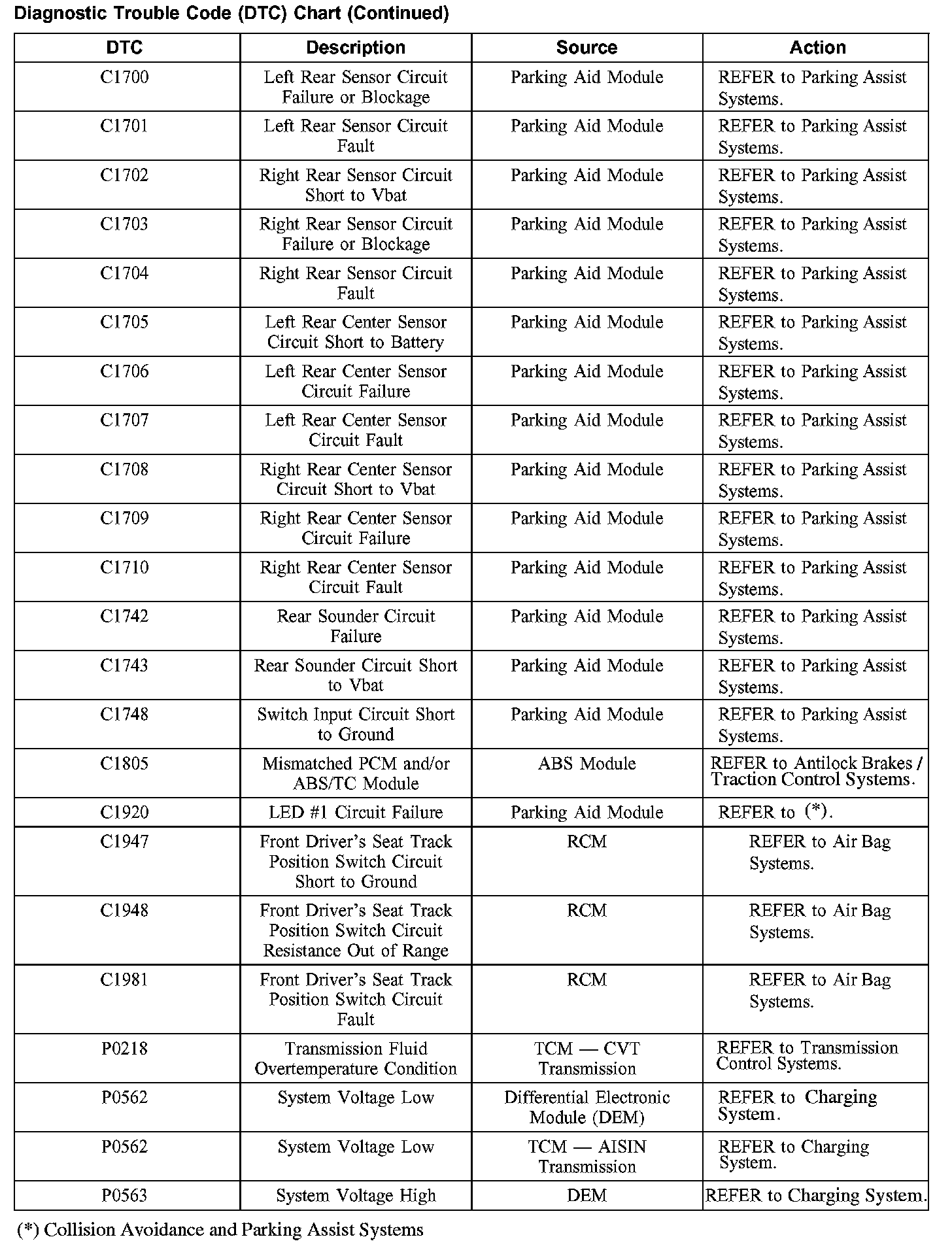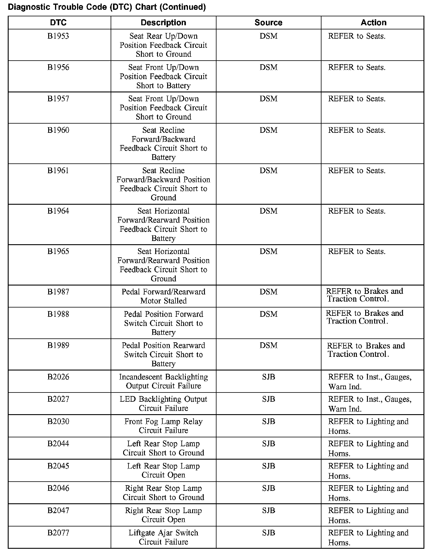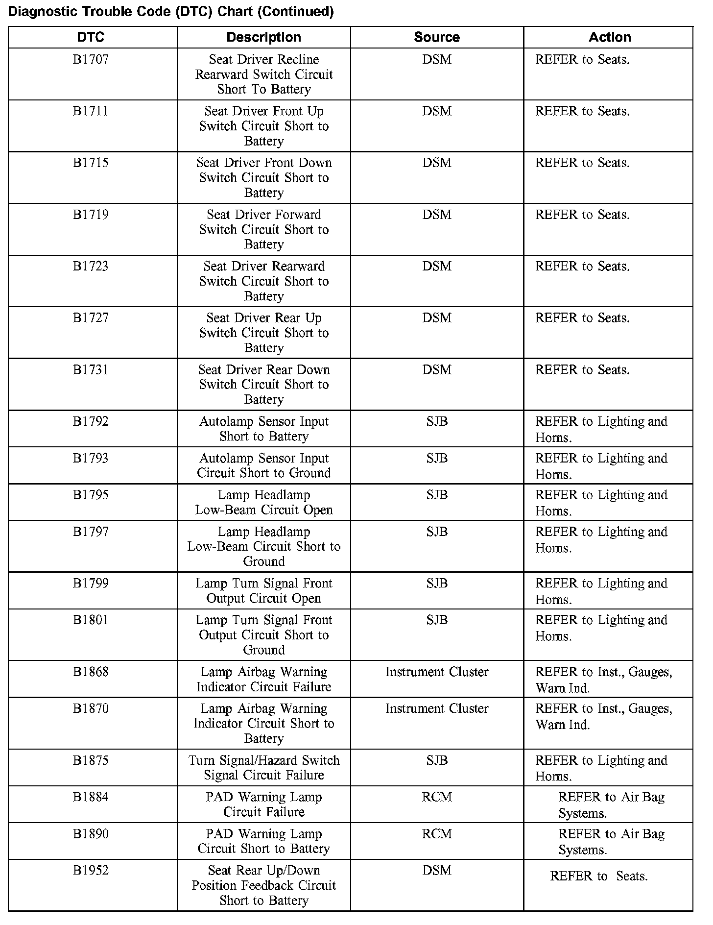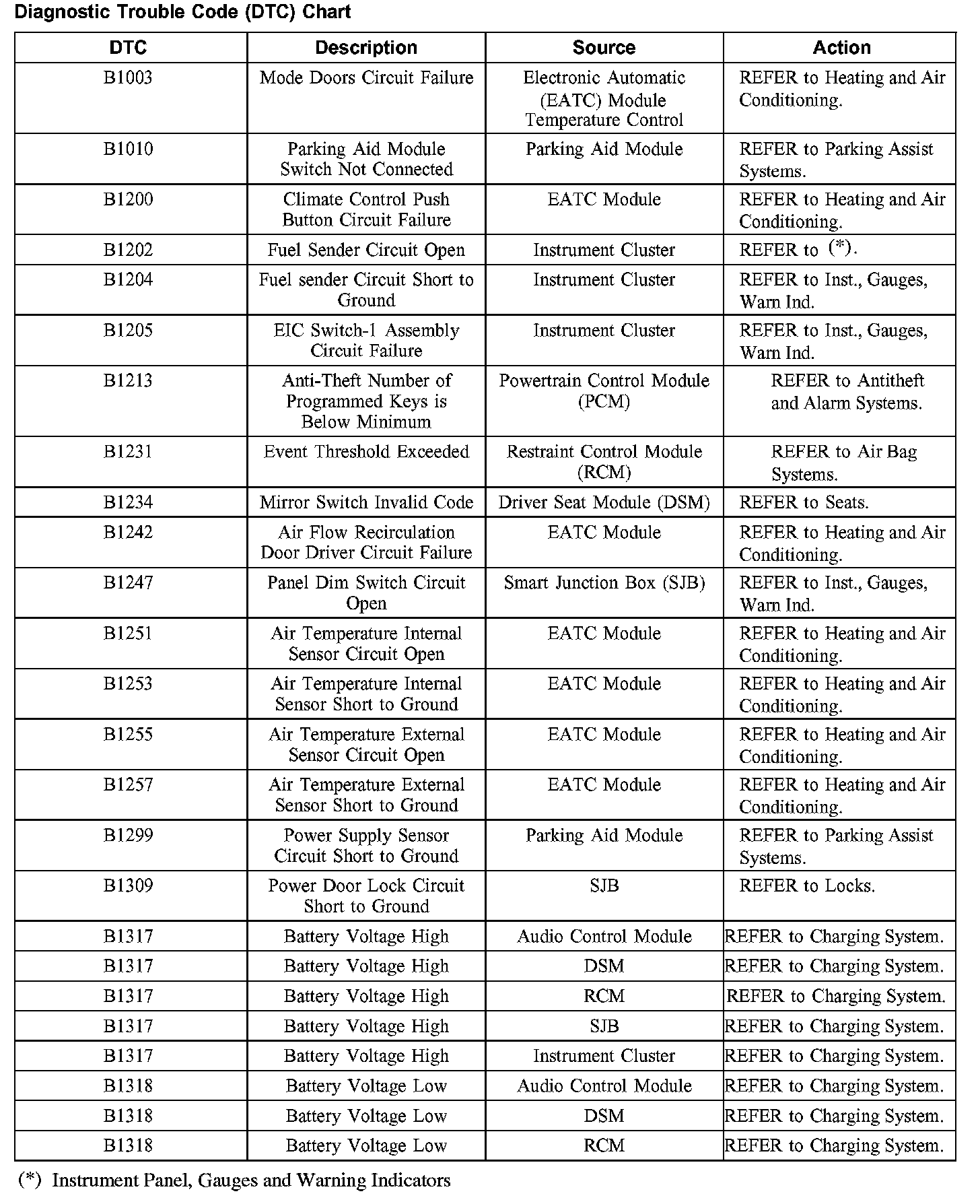 DIAGNOSTIC TROUBLE CODE CHARTB1003-B1318: