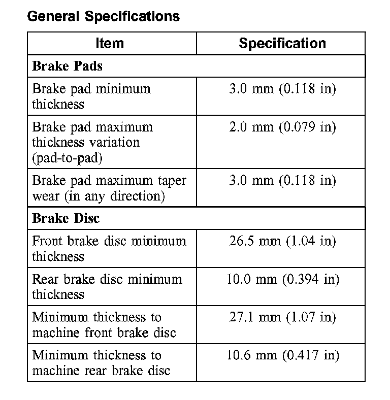 Lateral runout and disc thickness variation measurements are not required because correct adjustment of the on-vehicle brake lathe will make sure that these dimensions are within specifications.
