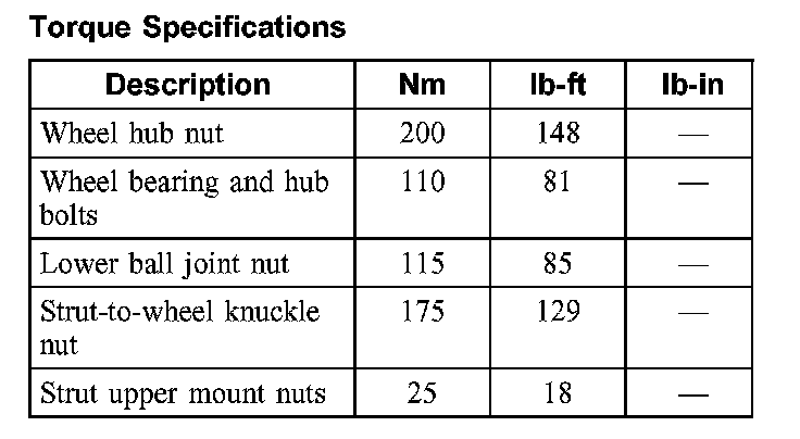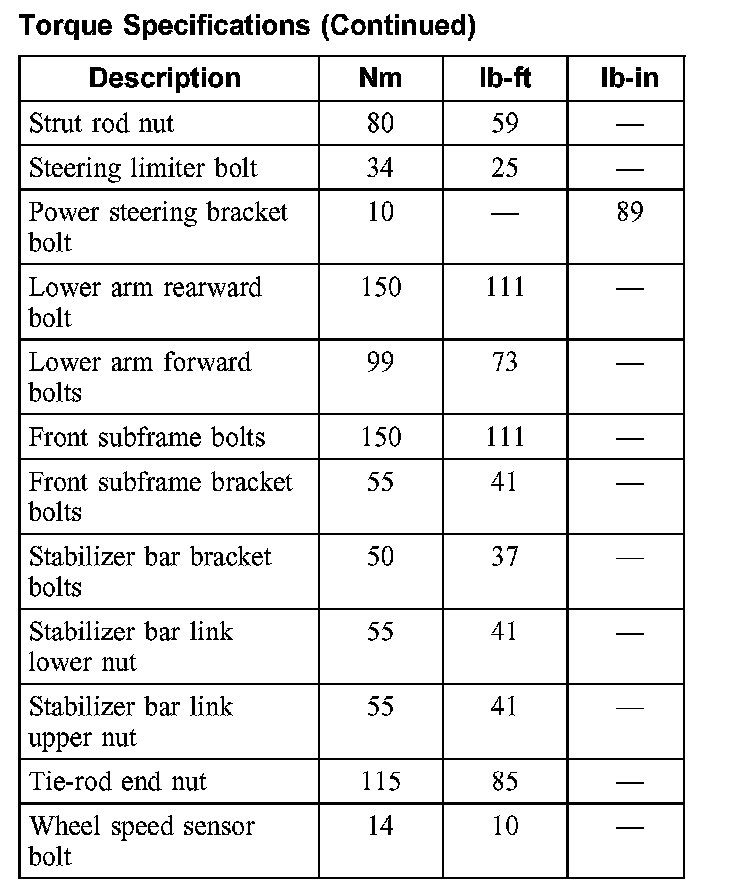 Torque Specifications: