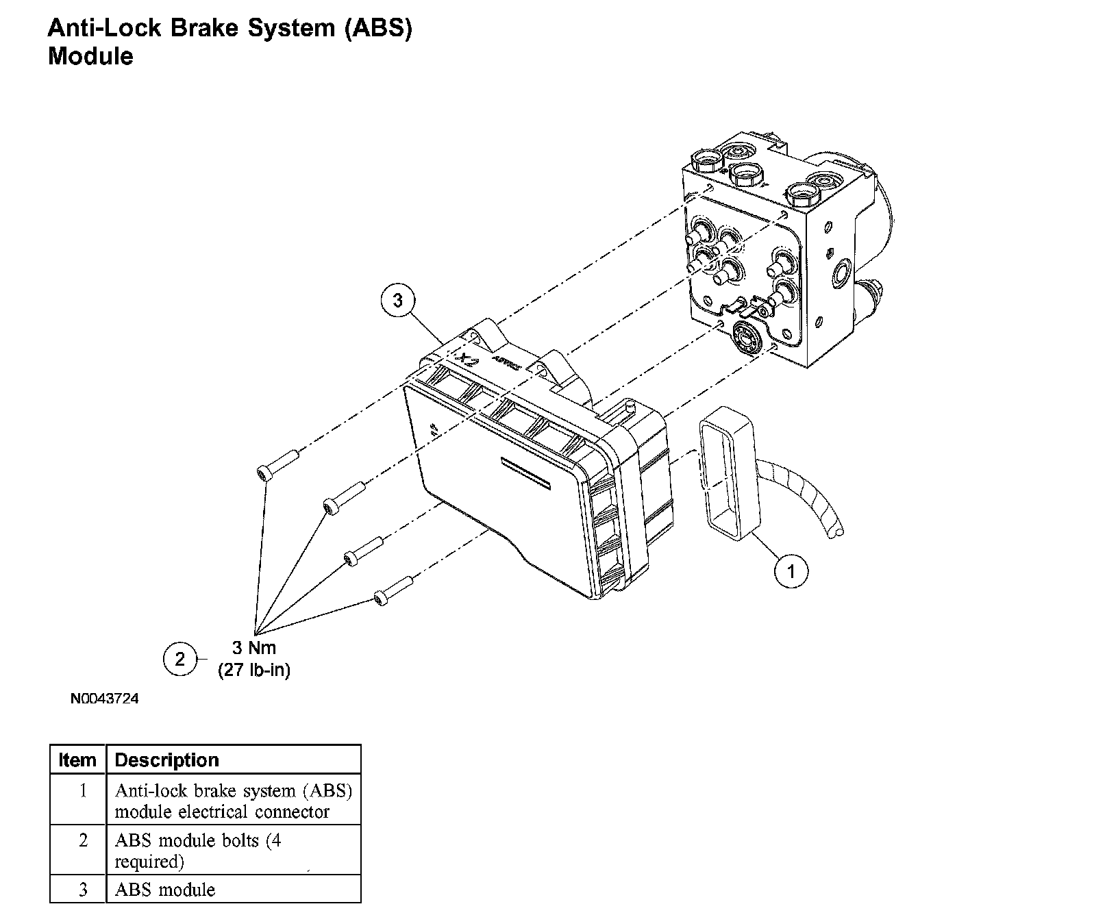2. NOTE: The anti-lock brake system (ABS) module bolts must be removed and installed in the sequence shown.