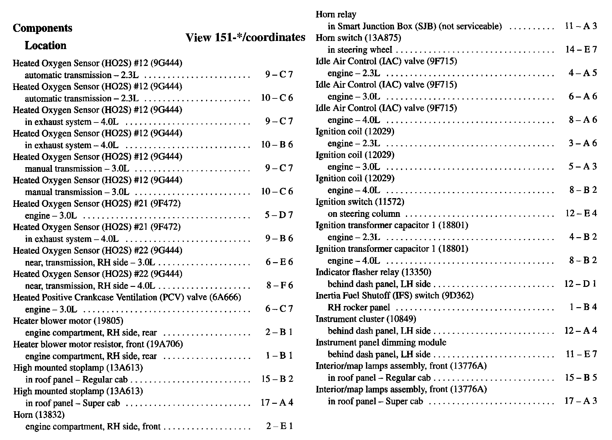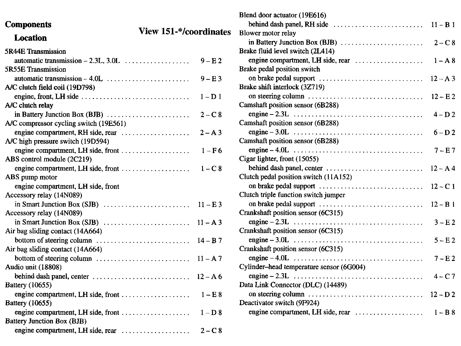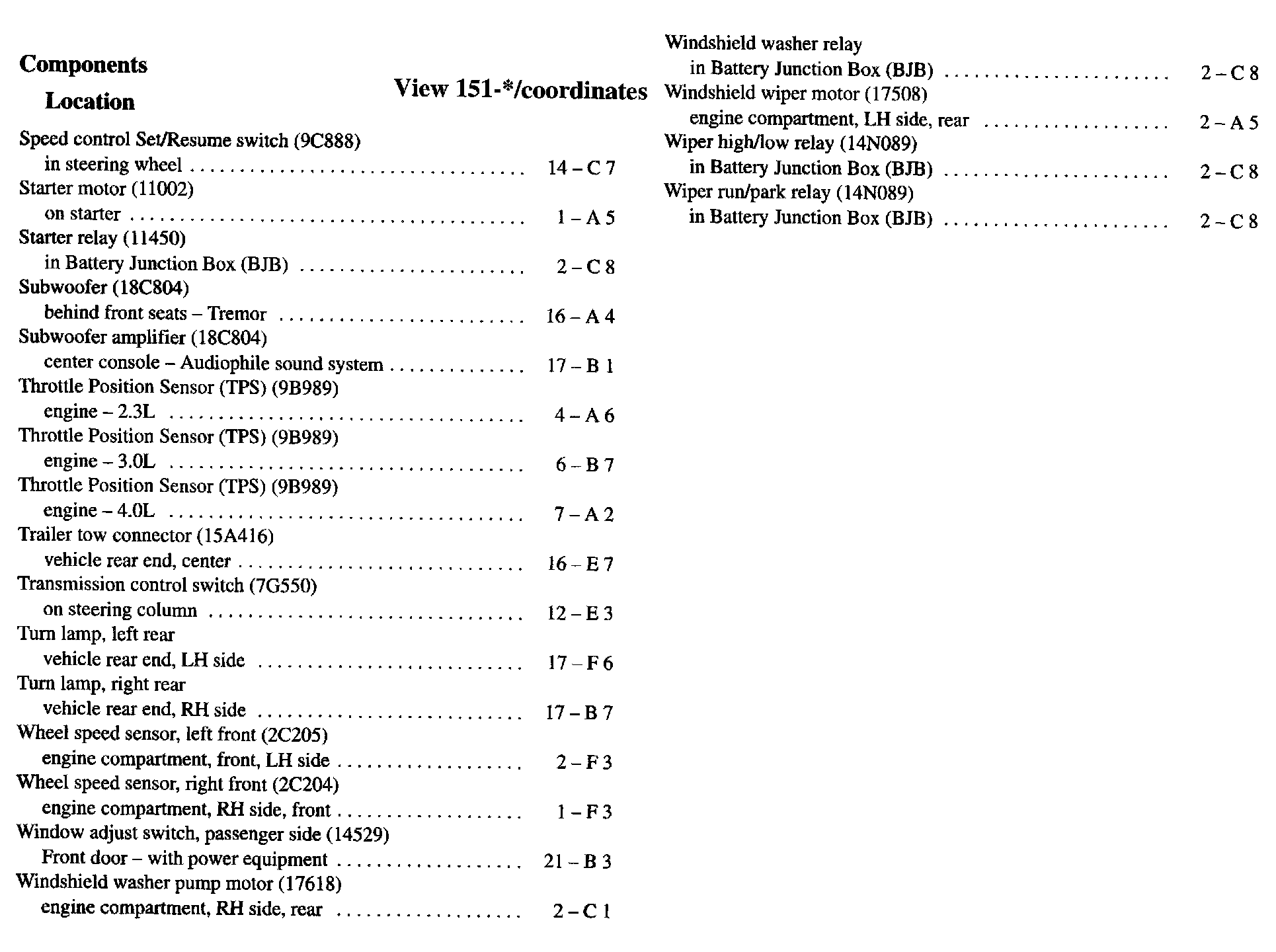 If a link on the Component Location Index to a View is not provided, that means that the Component and/or View in question does NOT apply to the vehicle model selected.