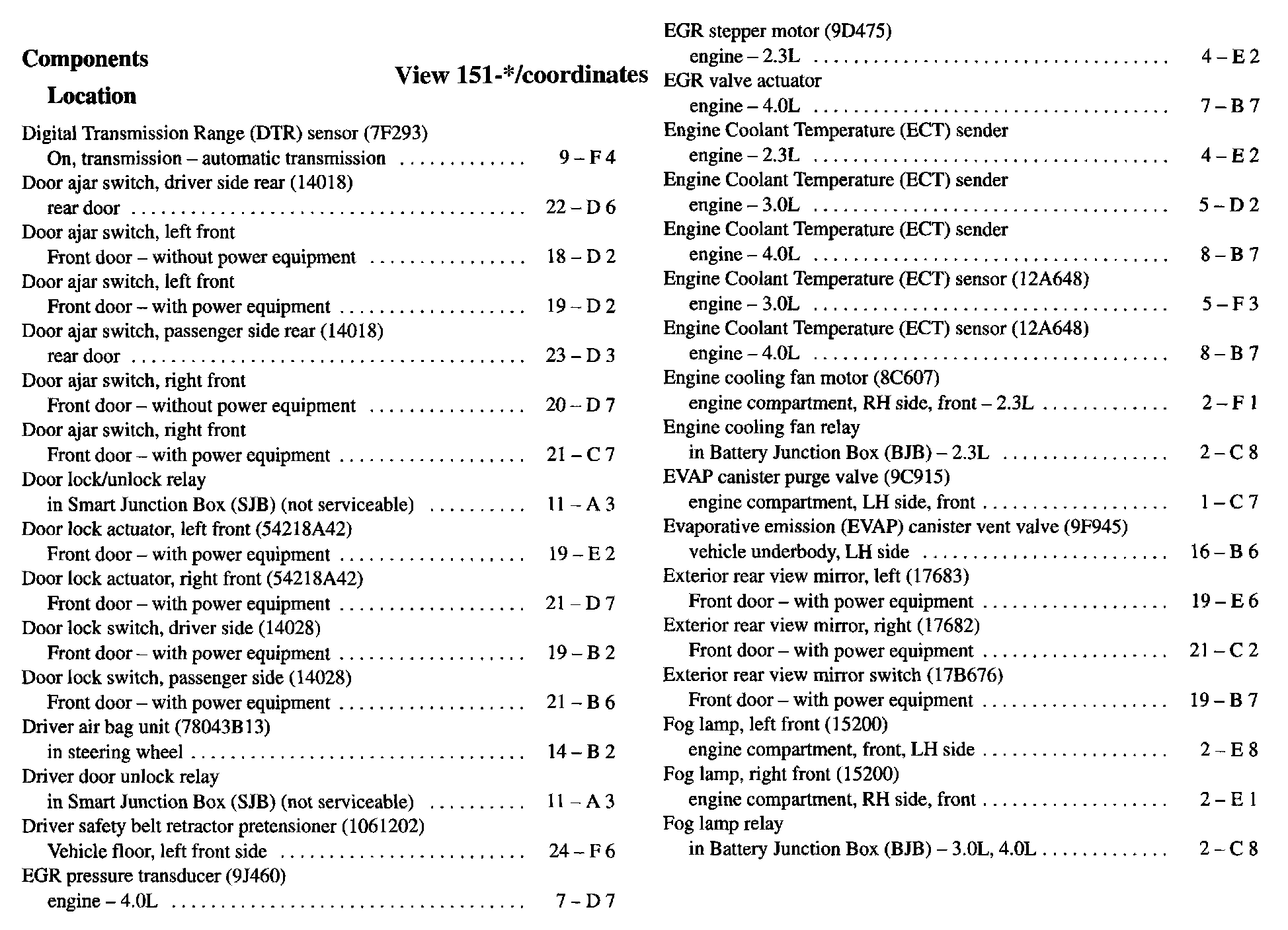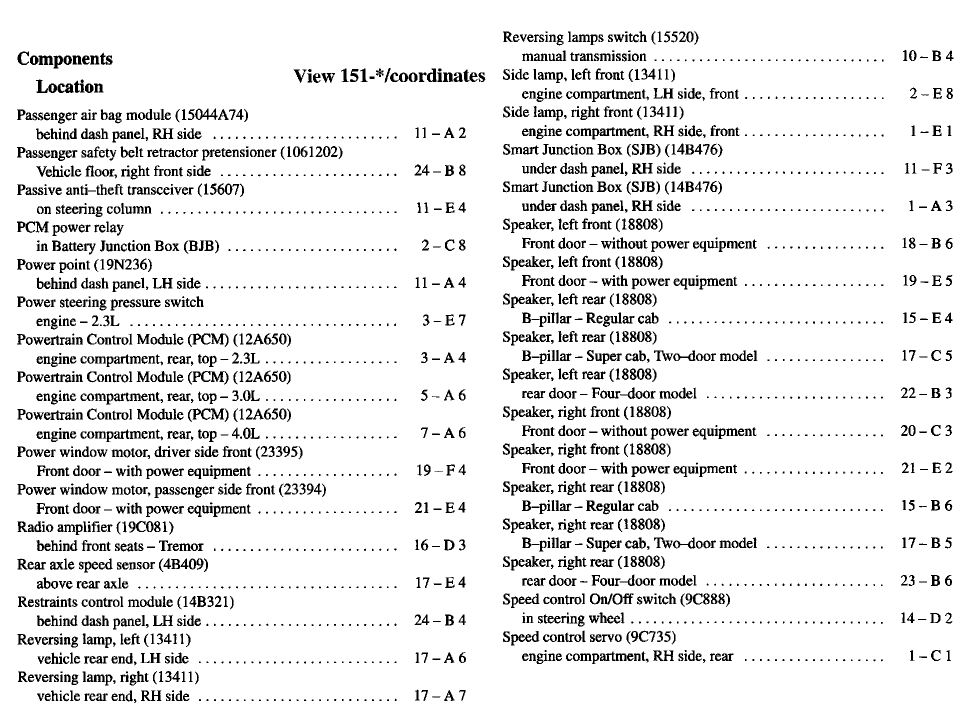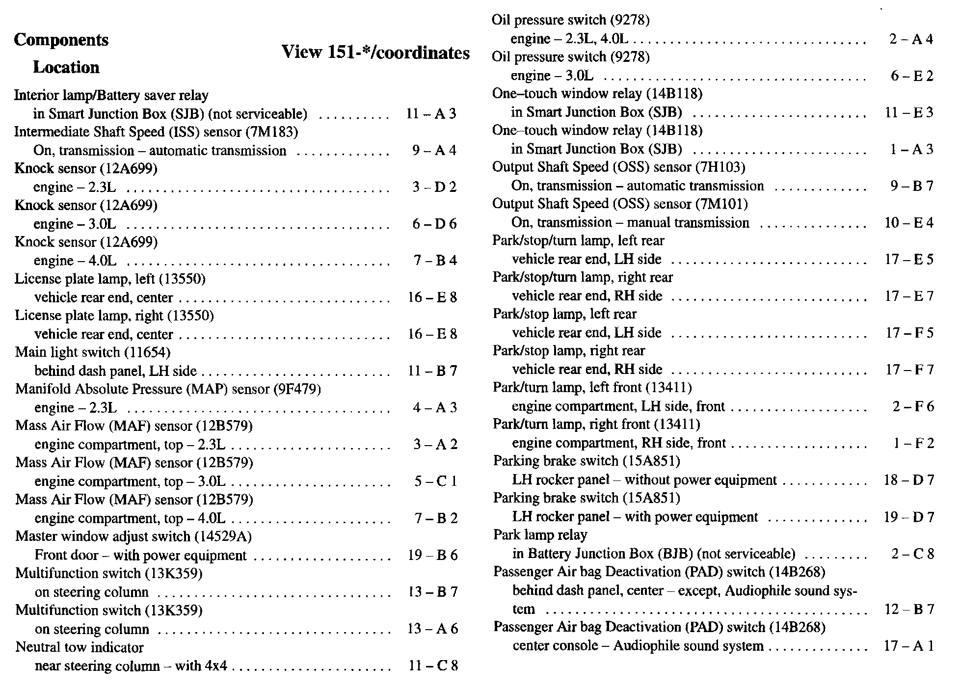 If a link on the Component Location Index to a View is not provided, that means that the Component and/or View in question does NOT apply to the vehicle model selected.