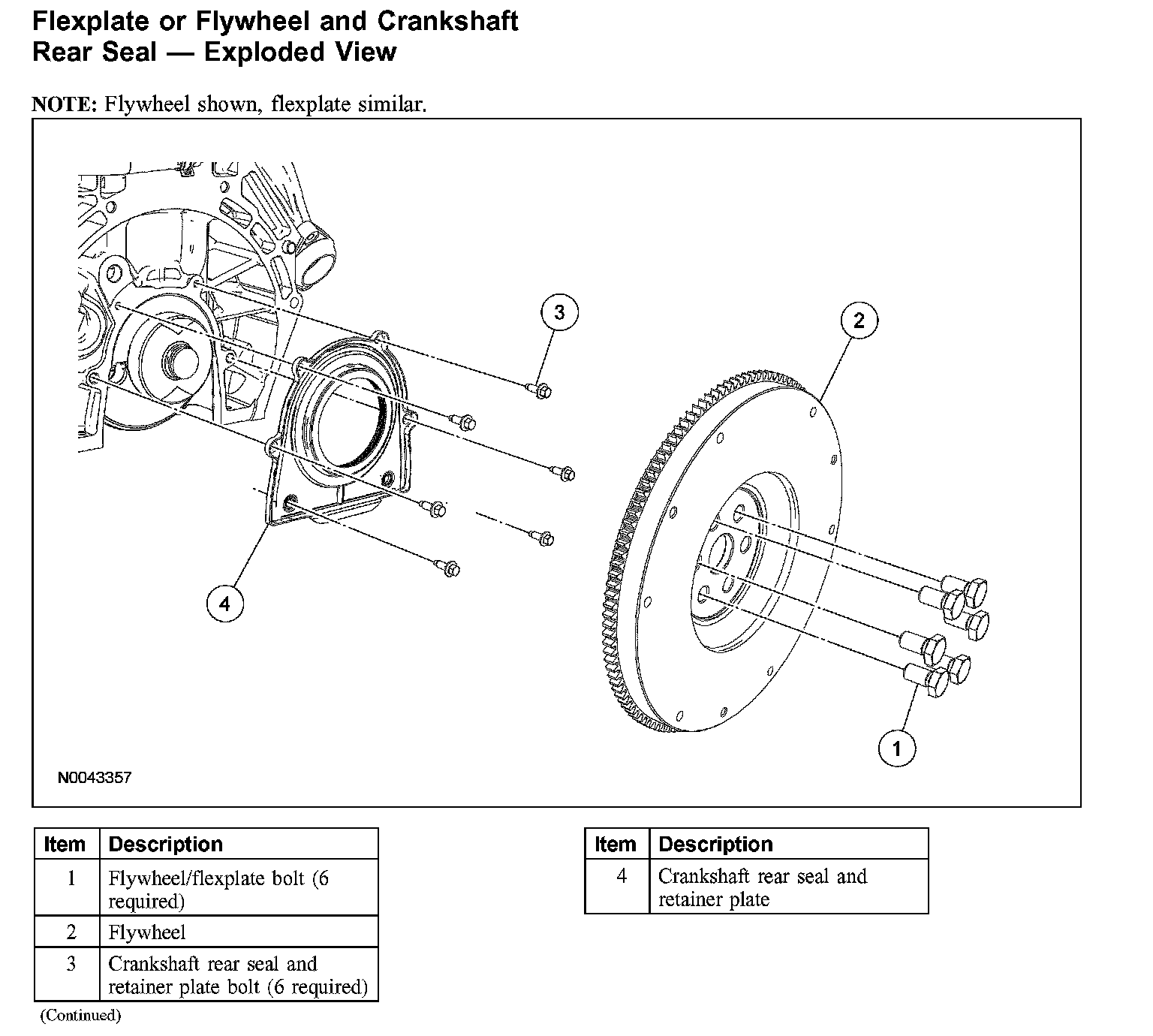 Flexplate or Flywheel and Crankshaft Rear Seal - Exploded View: