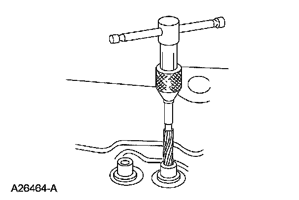 2. If the valve guide is not within specifications, ream the valve guide and install a valve with an oversize stem or remove the valve guide and install a new valve guide.