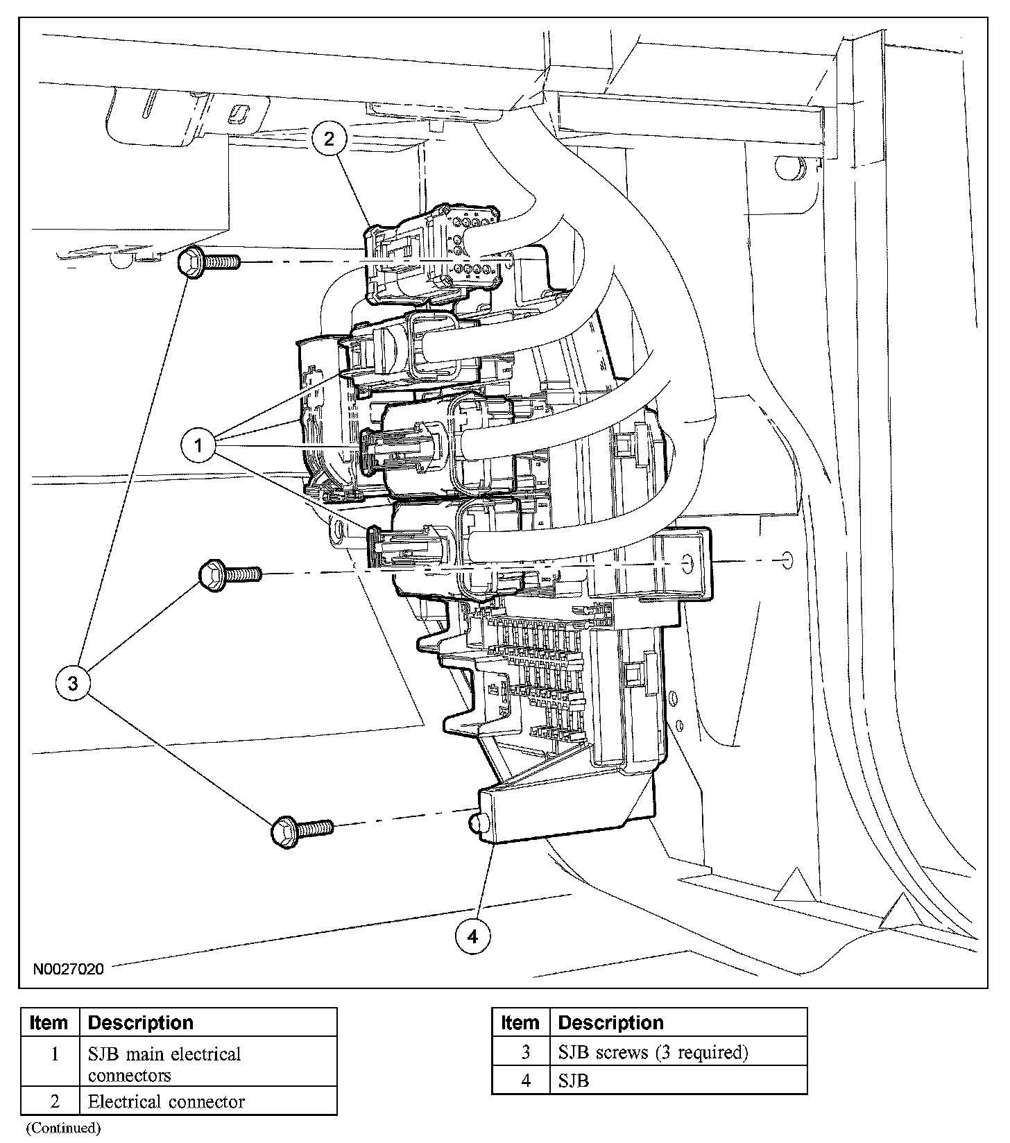 1. CAUTION: Prior to removal of the SJB, it is necessary to upload module configuration information to the diagnostic tool. This information needs to be downloaded into the new module once installed.