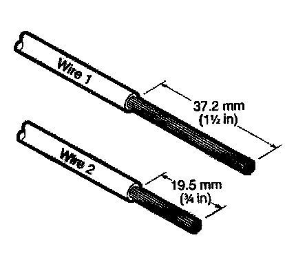 2. Strip 1/4" (6.35mm) of insulation from each wire end, taking care not to nick or cut wire strands.