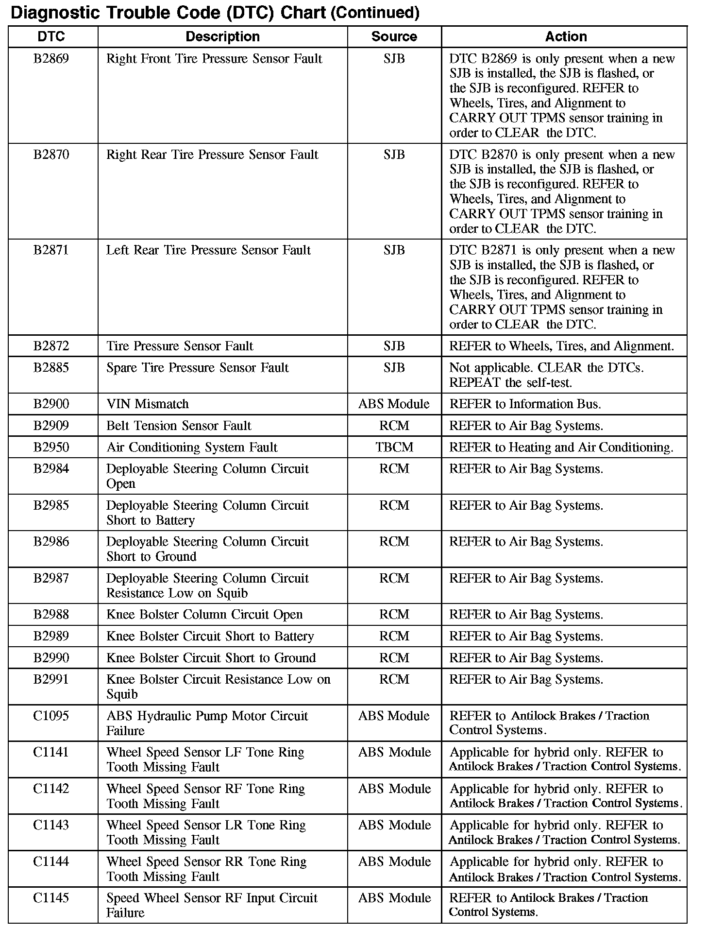 DIAGNOSTIC TROUBLE CODE (DTC) CHARTB1010-B1244: