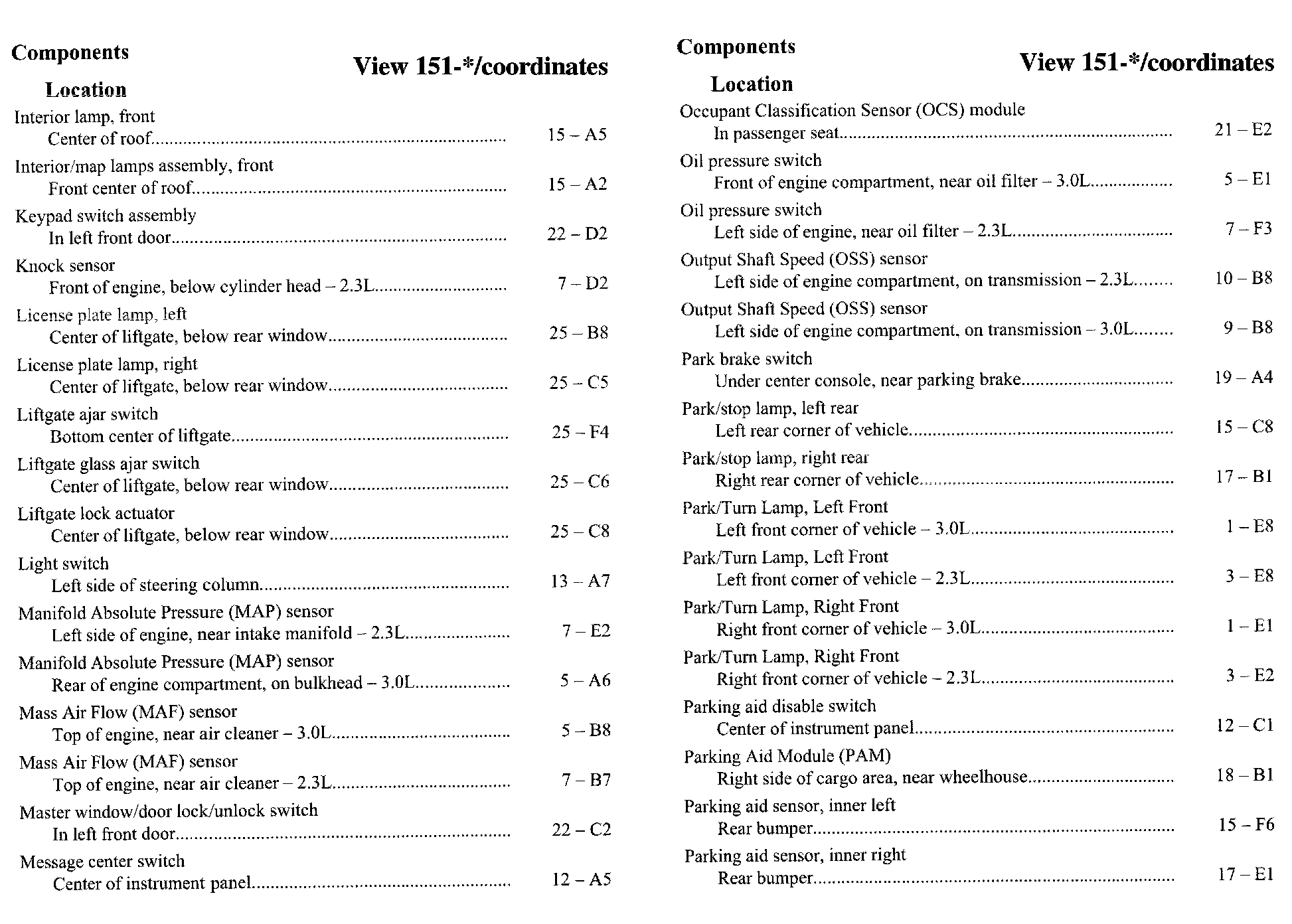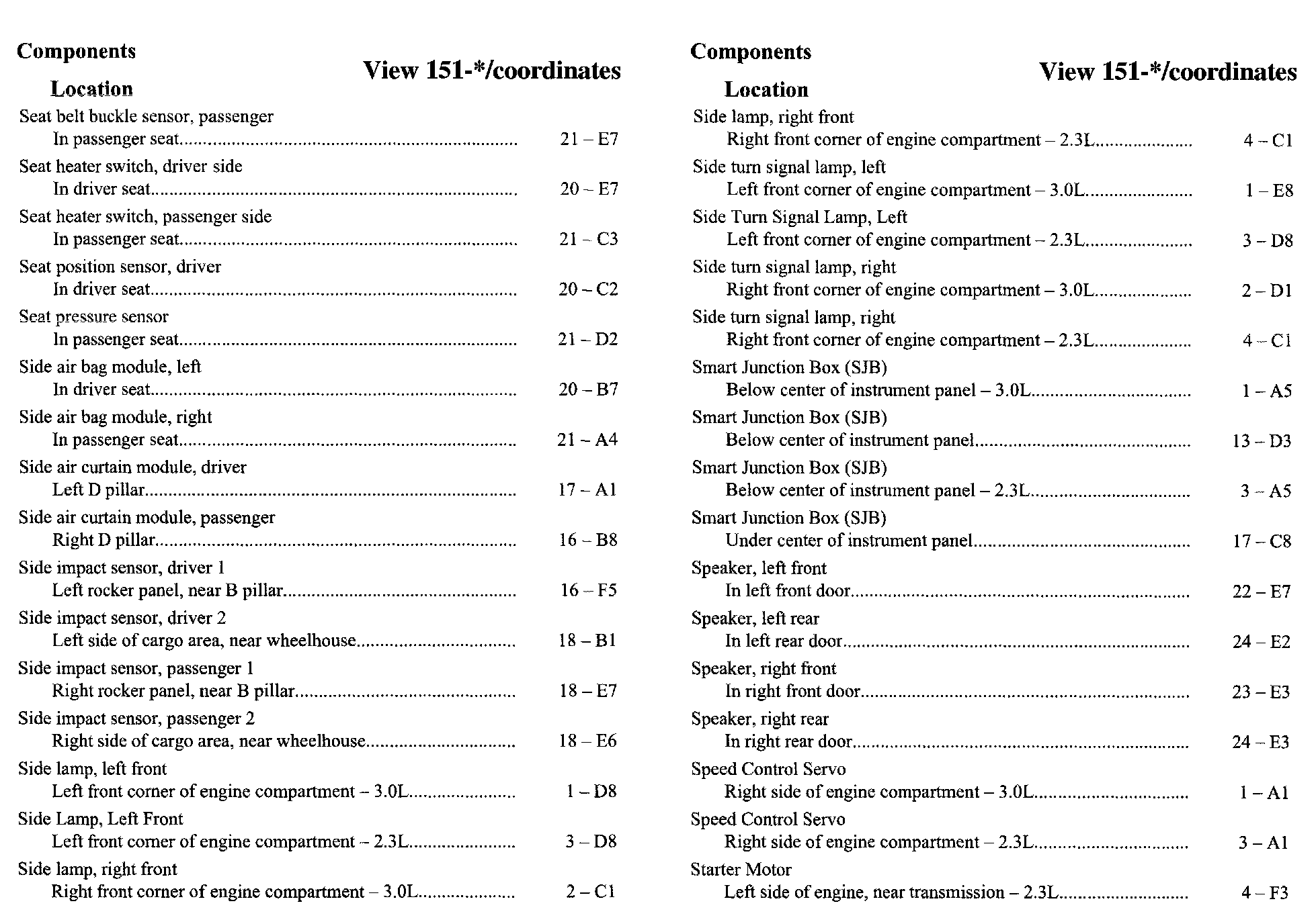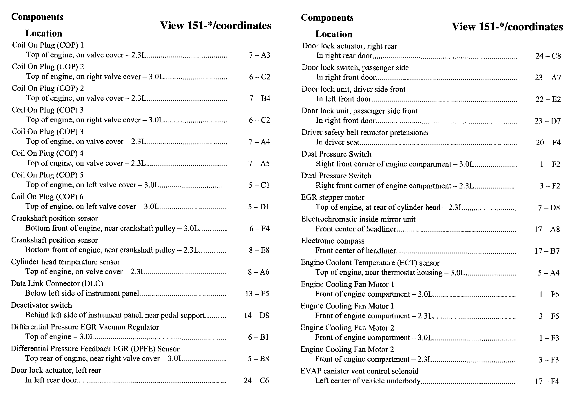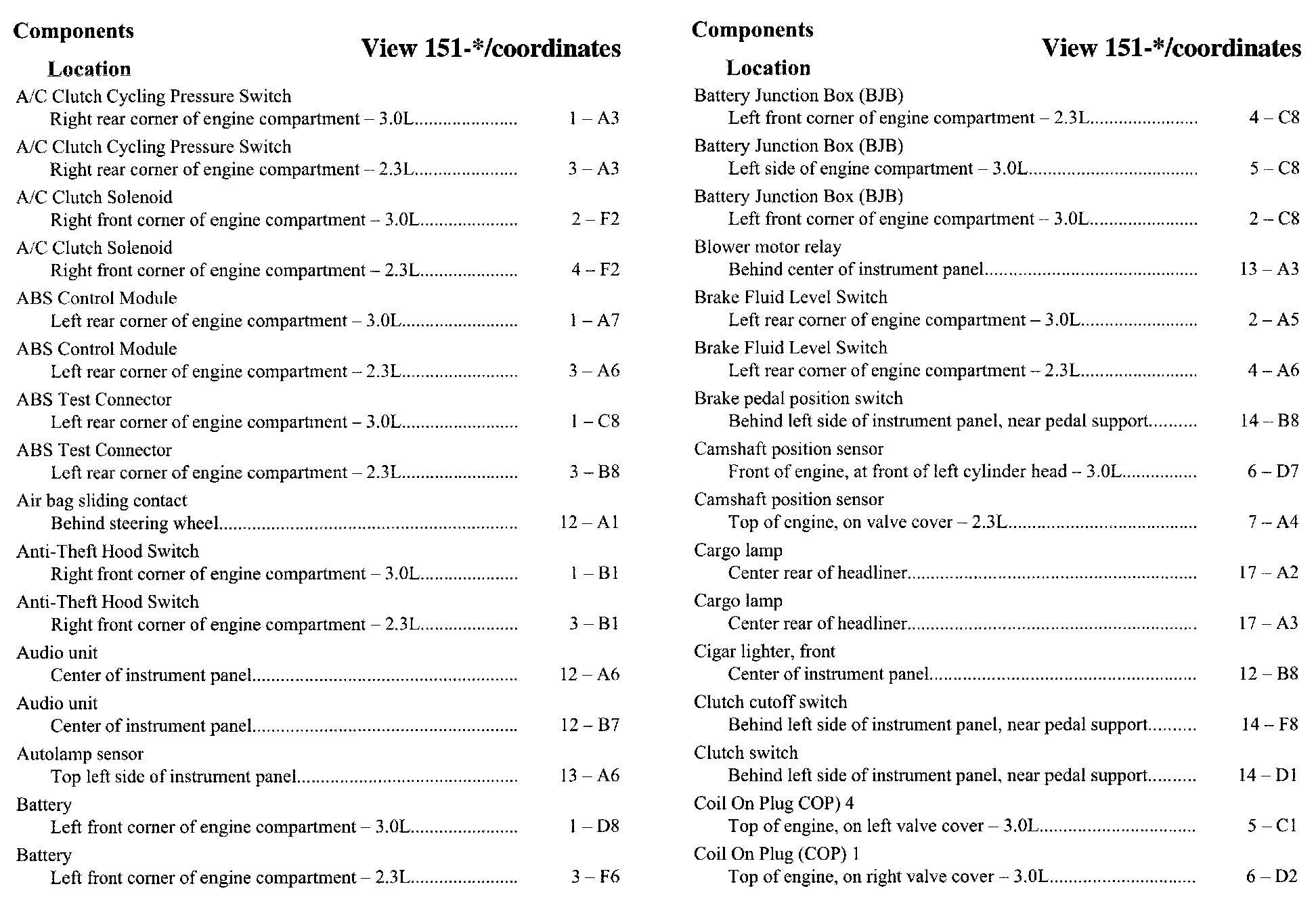 PLEASE NOTE: If a link on the Component Location Index to a View is not provided, that means that the Component and/or View in question does NOT apply to the vehicle model selected.