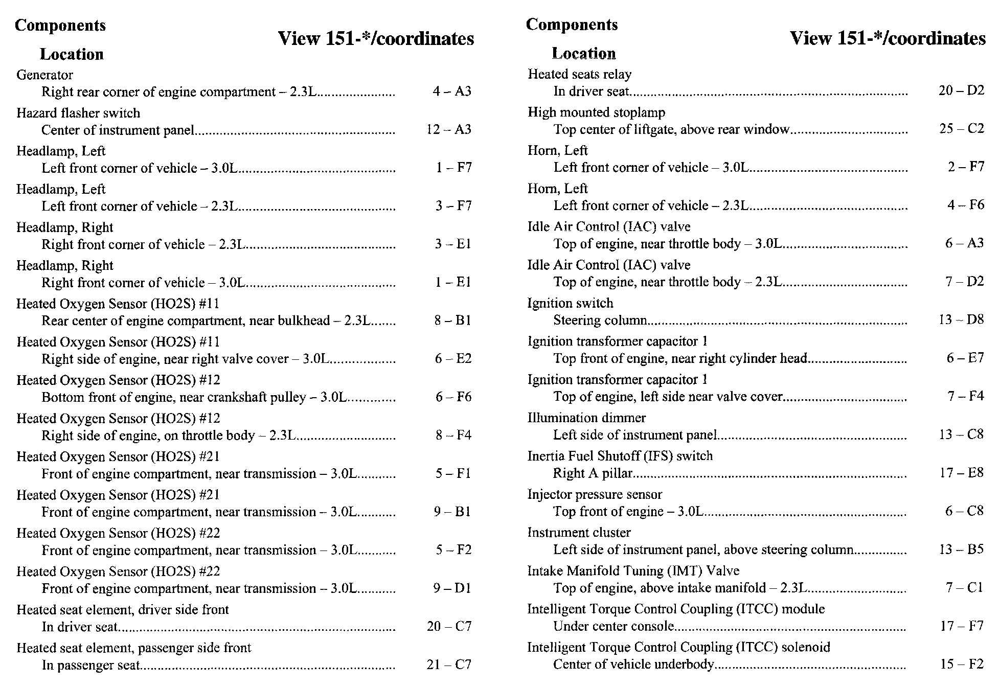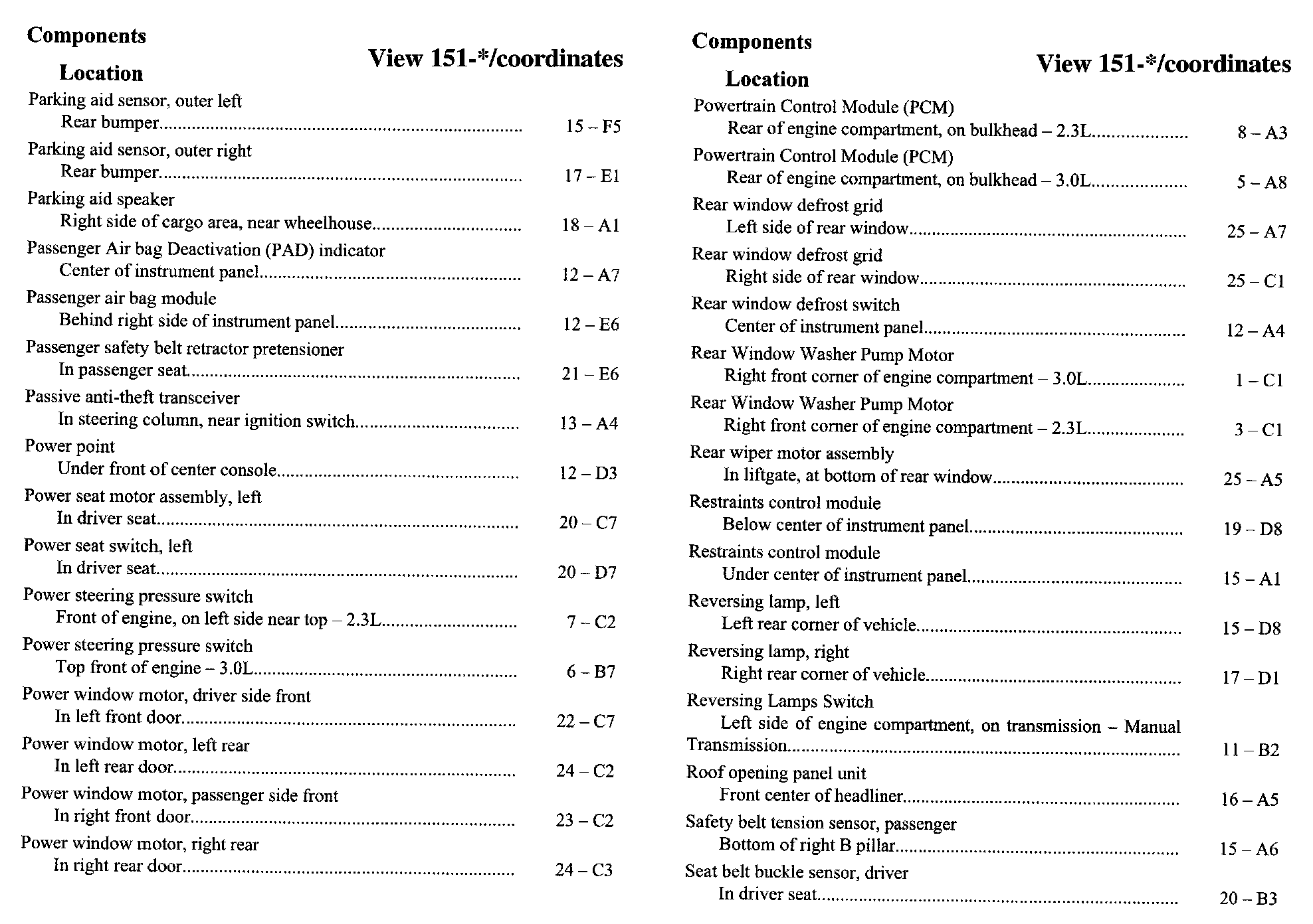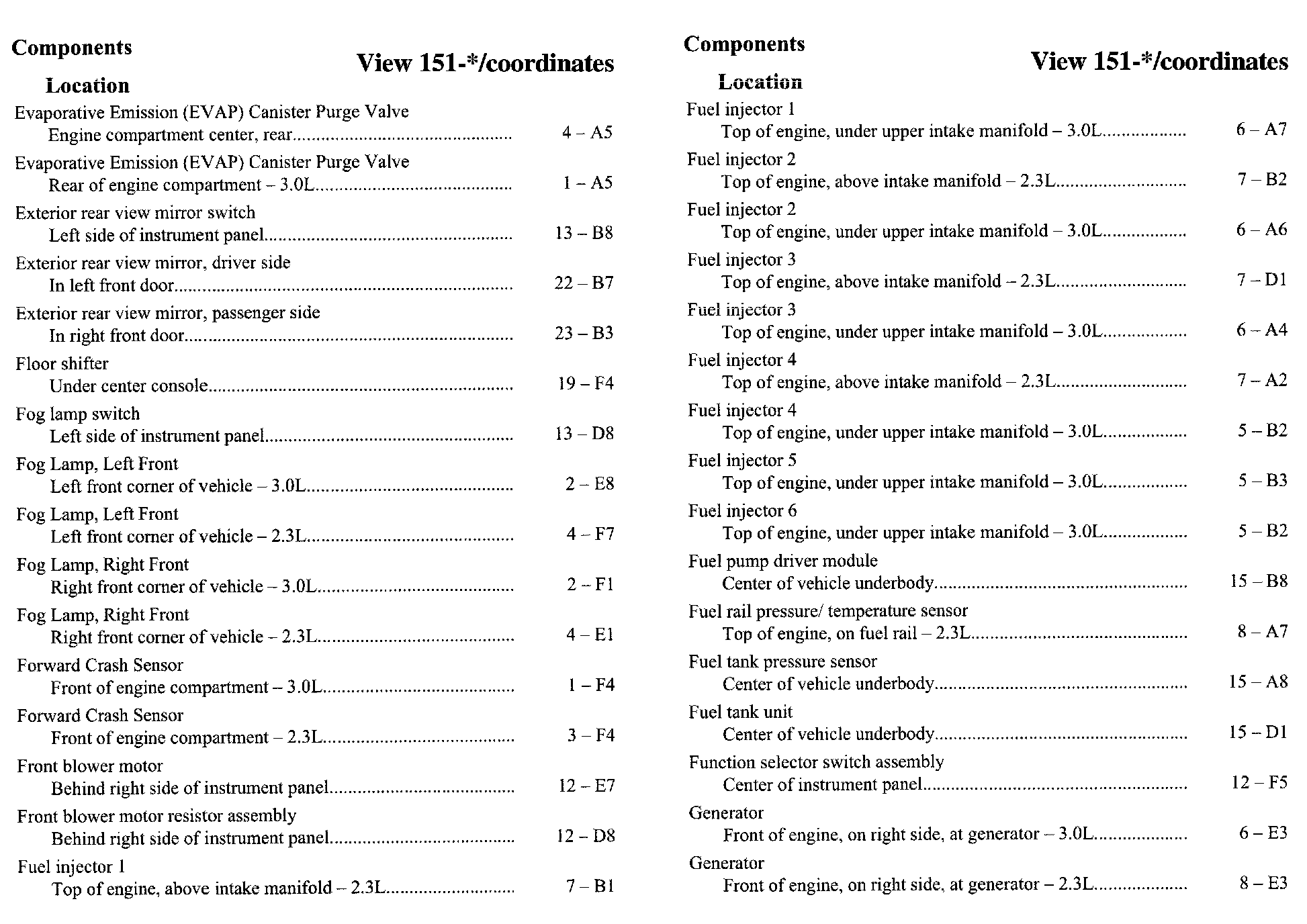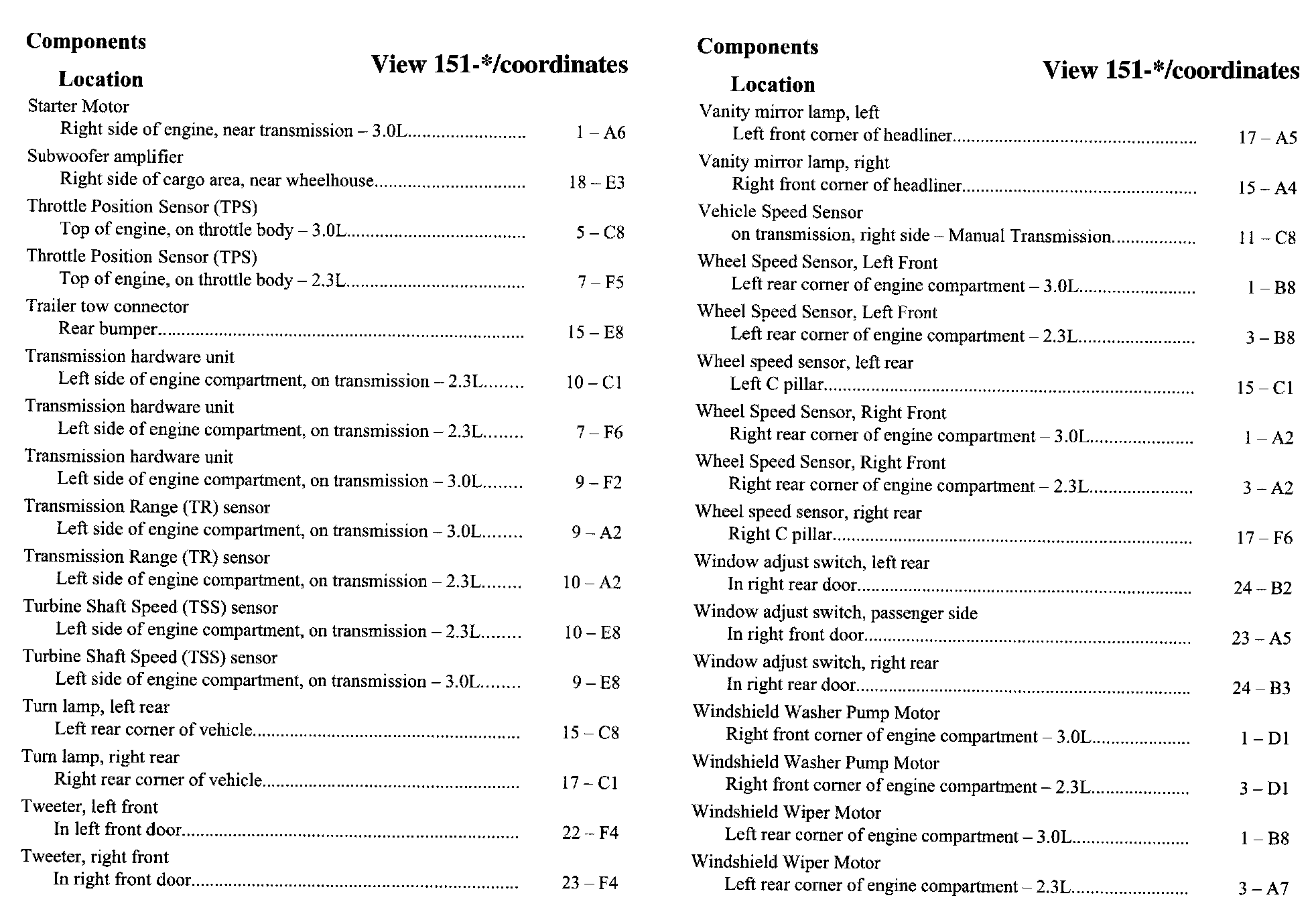 PLEASE NOTE: If a link on the Component Location Index to a View is not provided, that means that the Component and/or View in question does NOT apply to the vehicle model selected.