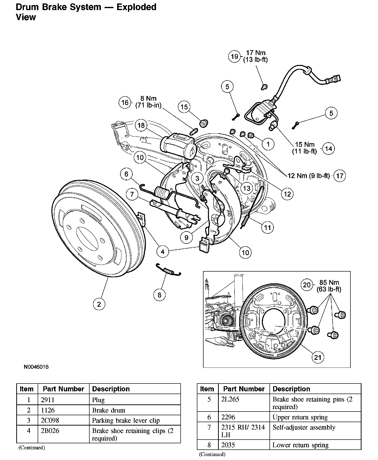 Drum Brake System - Exploded View (Part 2):