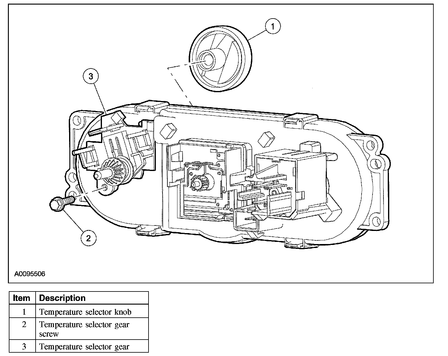 1. NOTE: Place the temperature selector switch in the full cold position before disengaging the temperature blend door actuator.