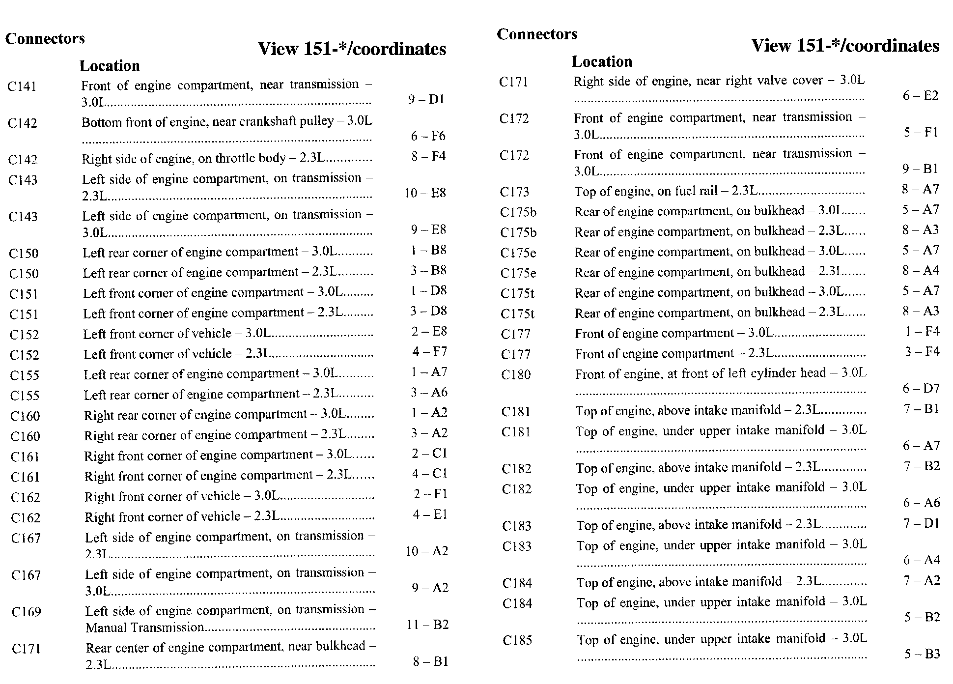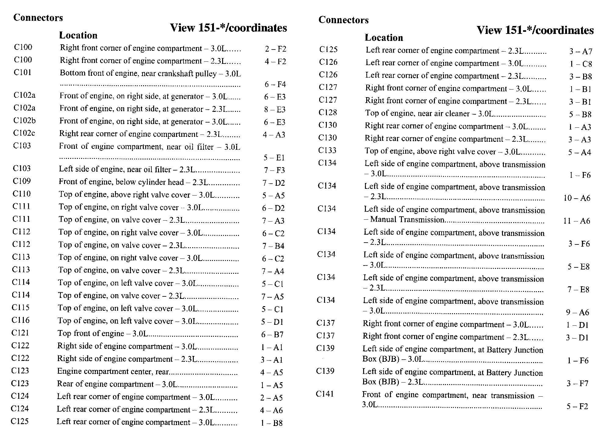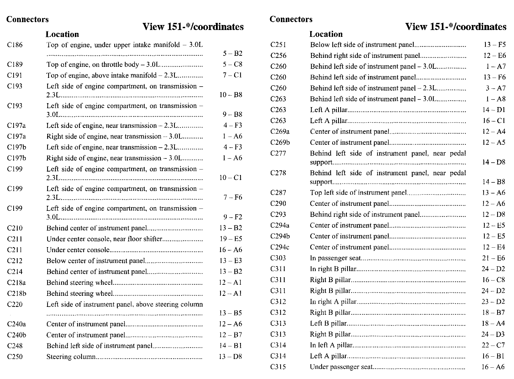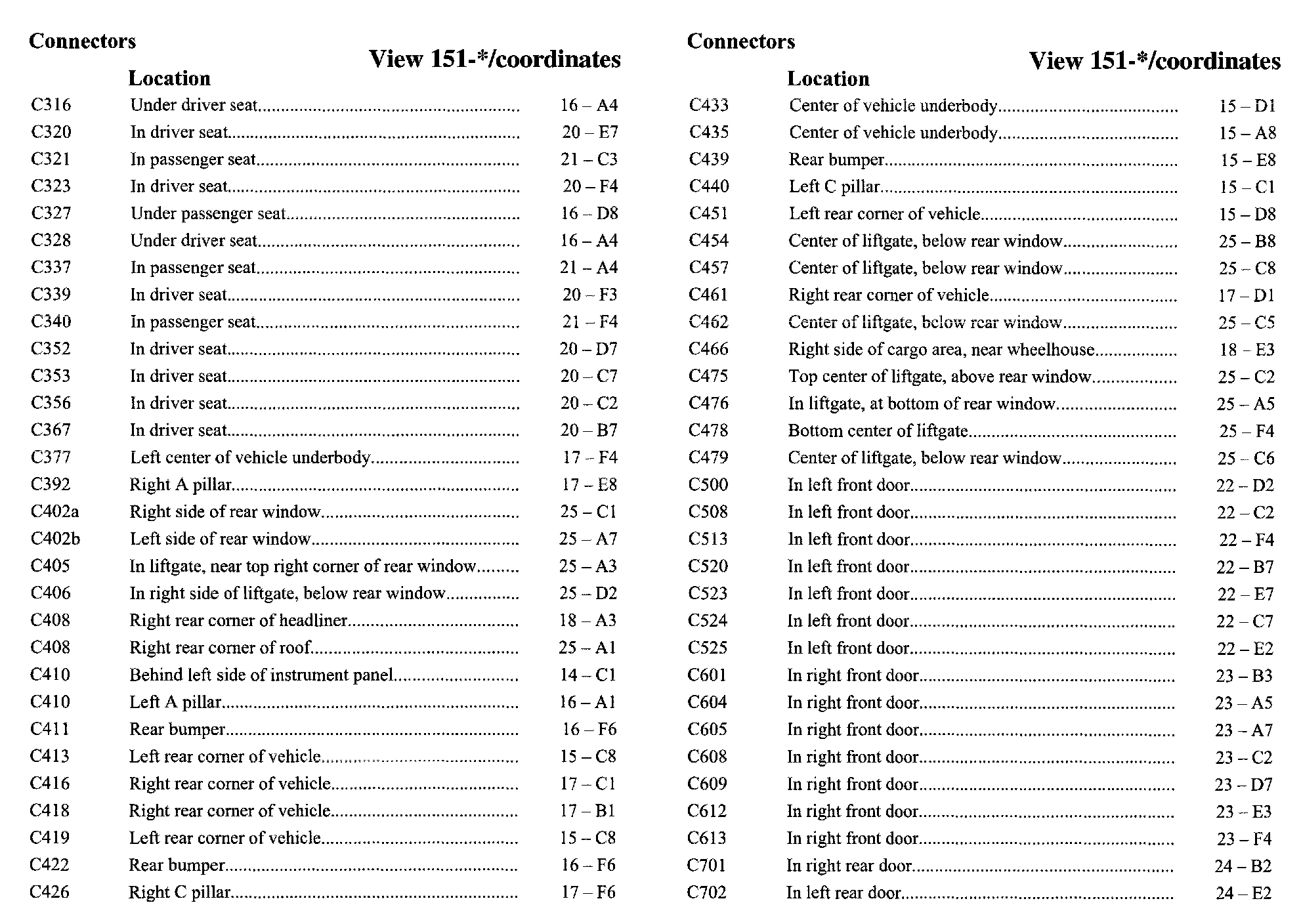 PLEASE NOTE: If a link on the Connector Location Index to a View is not provided, that means that the Connector and/or View in question does NOT apply to the vehicle model selected.