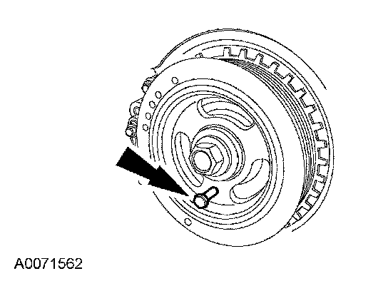 Install a 6 mm (0.23 in) x 18 mm (0.7 in) standard bolt in the crankshaft pulley.