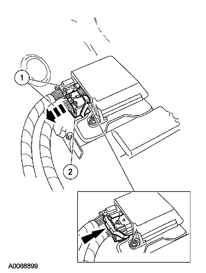 4. Disconnect the large restraints control module (RCM) electrical connector.
