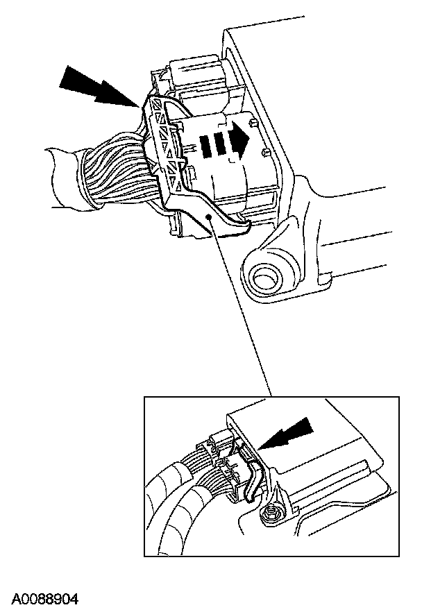 2 Pull out and disconnect the large RCM electrical connector.