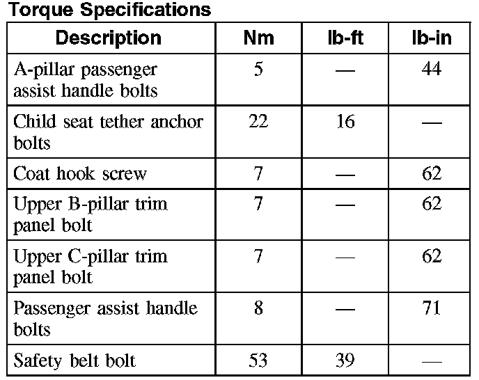 Torque Specifications: