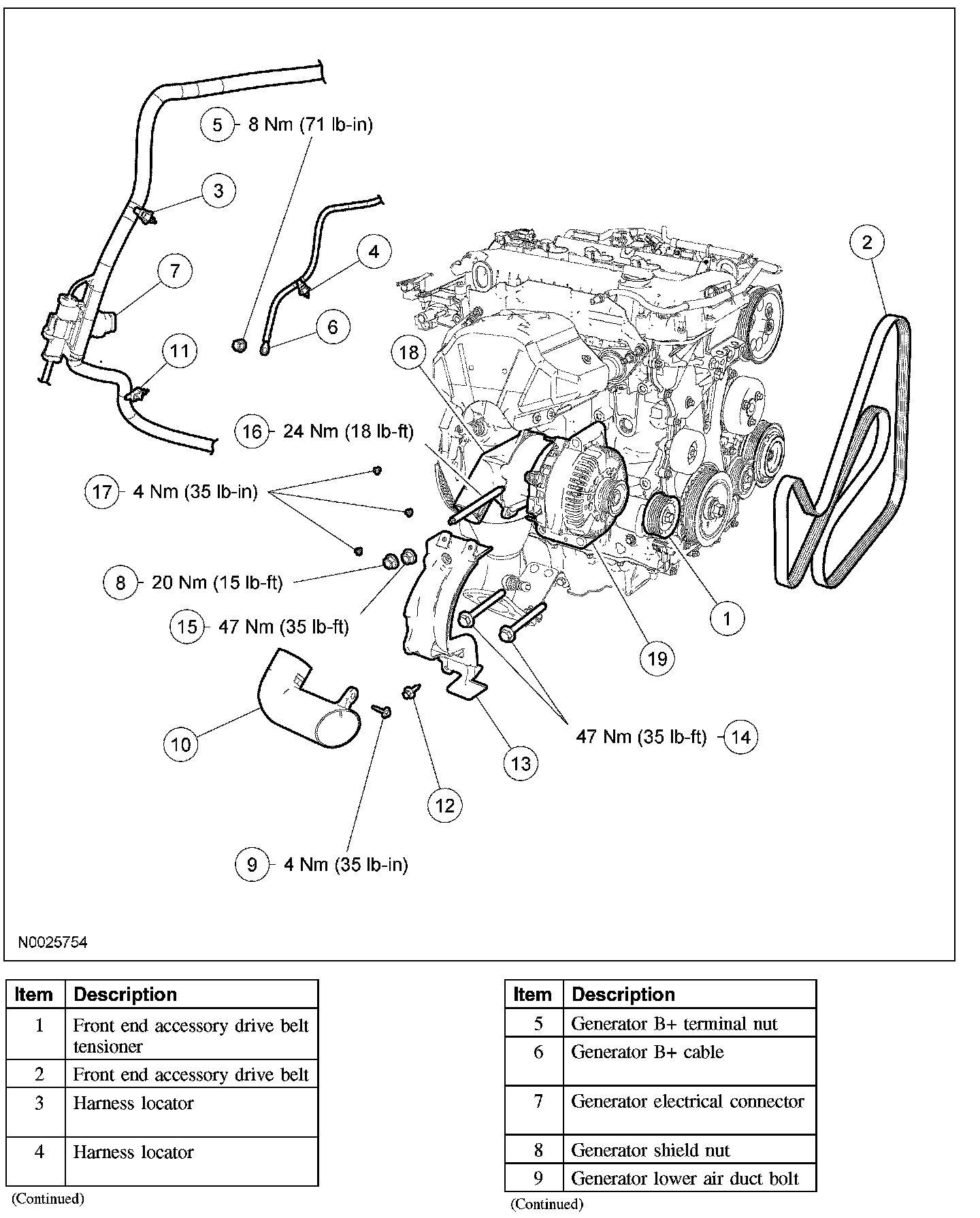 6. Position the generator B+ protective cover aside and remove the generator B+ terminal nut.