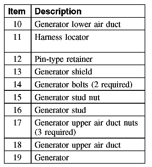 16. Remove the generator stud and position the generator aside to access the generator upper air duct nuts.