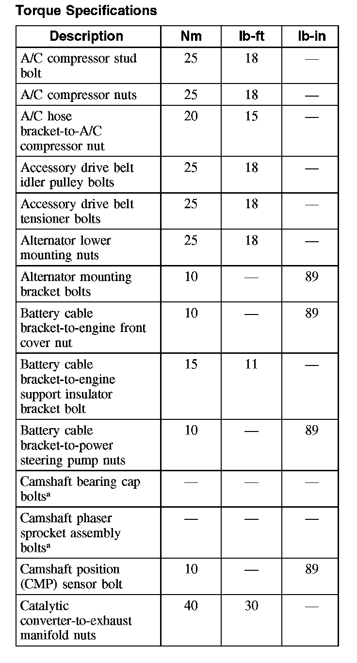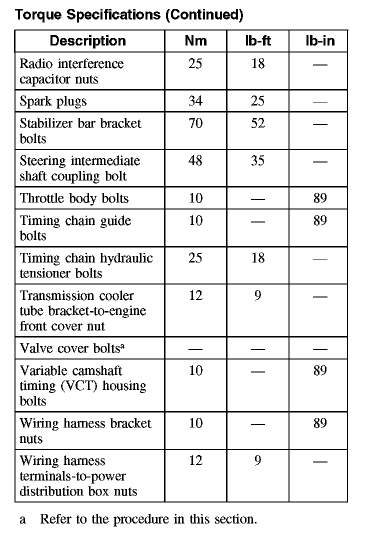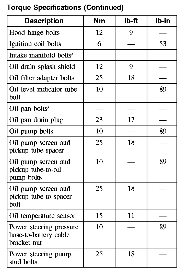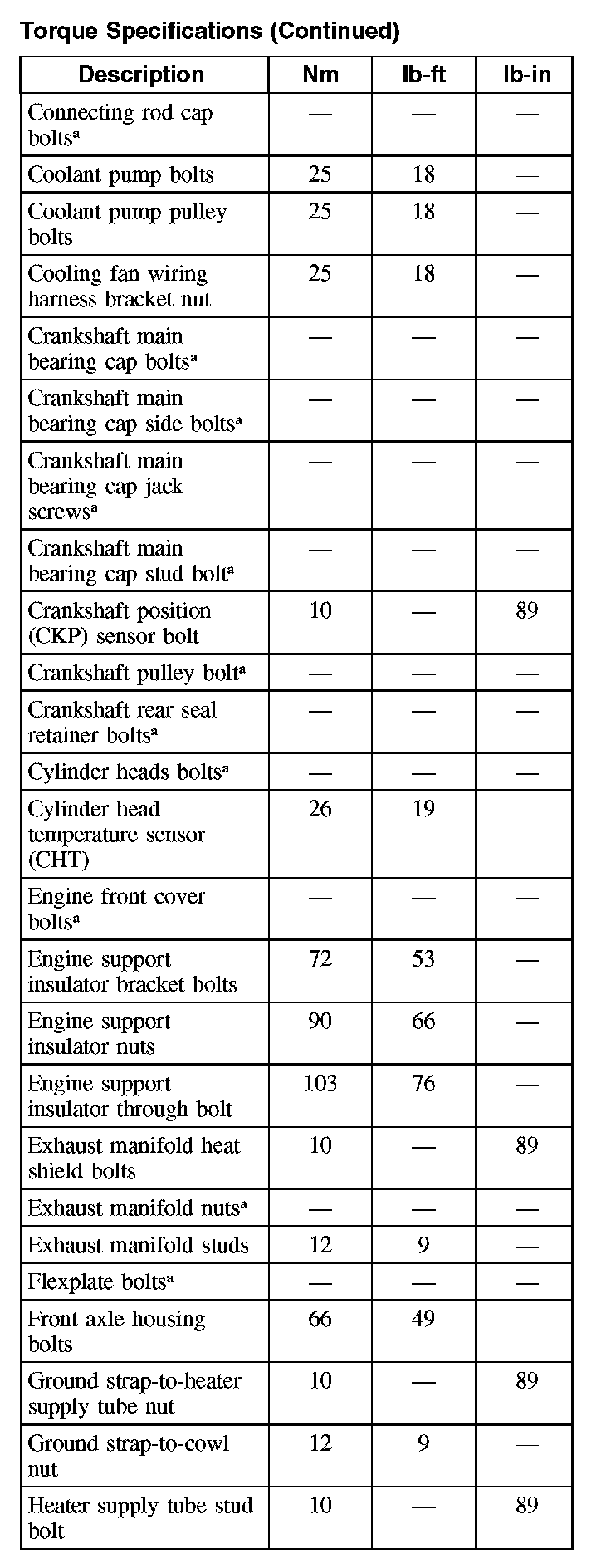 Torque Specifications (Continued):