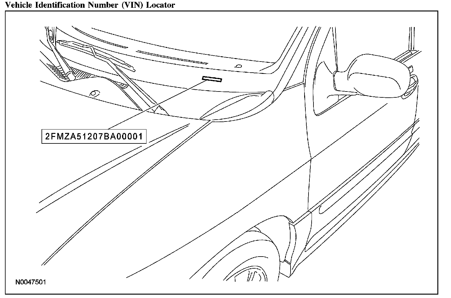The vehicle identification number (VIN) is a 17-digit combination of letters and numbers. The VIN is stamped on a metal tab riveted on the instrument panel, top upper left of the dash. The VIN is also found on the vehicle certification (VC) label.