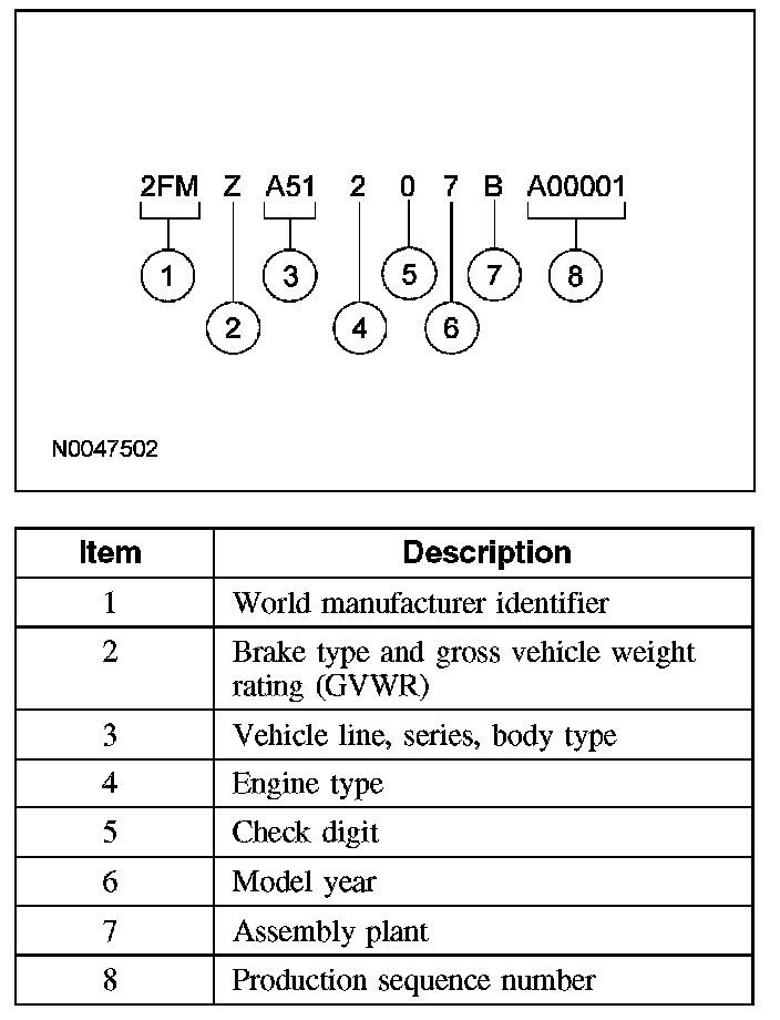 IDENTIFICATION CODESVehicle Identification Number (VIN) Locator: