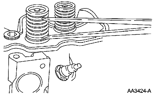 ^ Turn the valve spring and observe the space between the top of the valve spring and the square. Install a new valve spring if out of square.