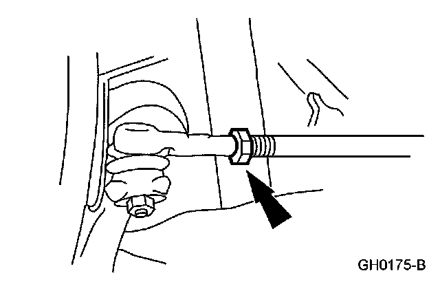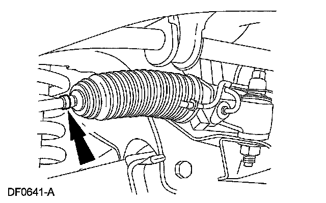 6. NOTE: Do not allow the steering gear bellows to twist when the front wheel spindle tie rod is rotated.