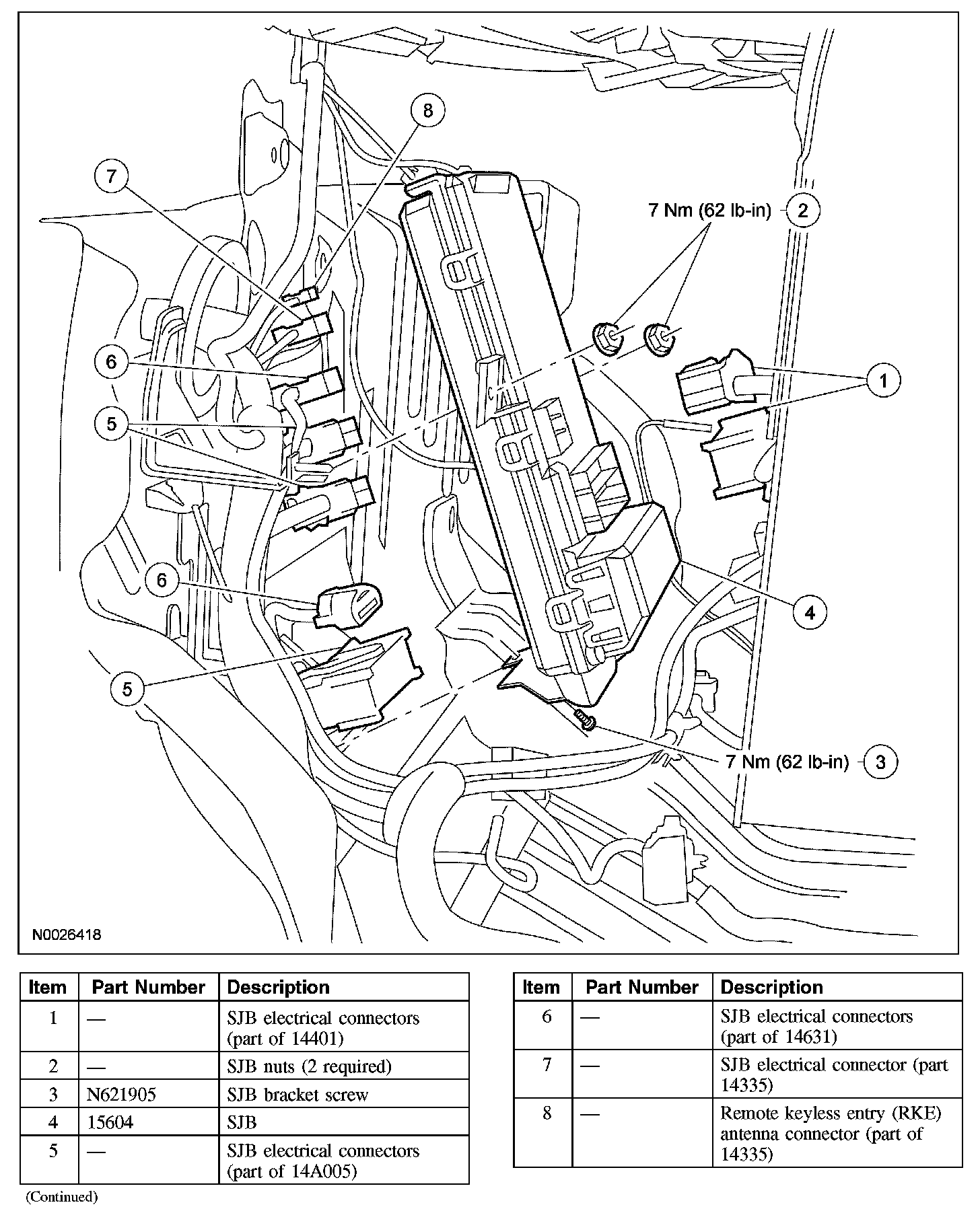 7. NOTE: Position the SJB forward to allow access to the wiring harness connectors on the rear face of the SJB.