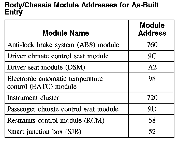 As-Built data is a VIN specific module configuration record. During vehicle build, the configuration from all modules is downloaded and stored in the As-Built database. As Built data will not reflect customer preference items that have been changed from the default state. These items will need to be changed using programmable parameters after the module is configured.