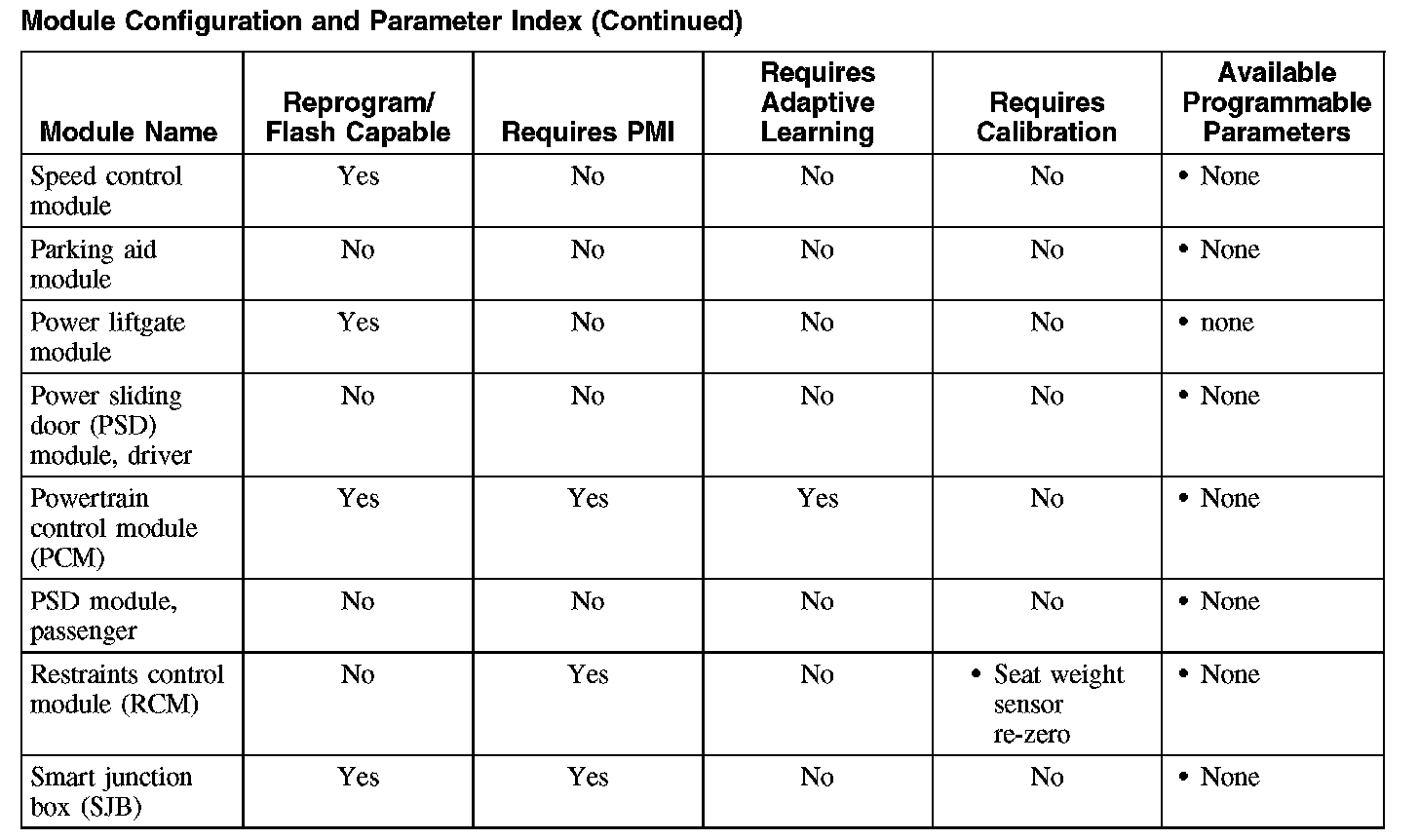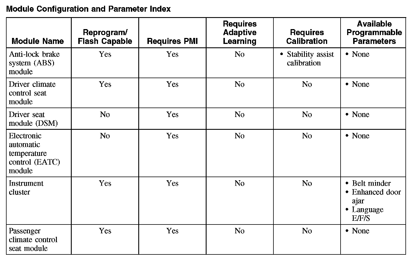 Programmable parameters are customer preference items that may be modified by the dealer via scan tool or in some cases modified by the customer following a procedure listed in the vehicle Owner's Literature. While many configuration options may exist for a module, only a few of these options are programmable parameters.