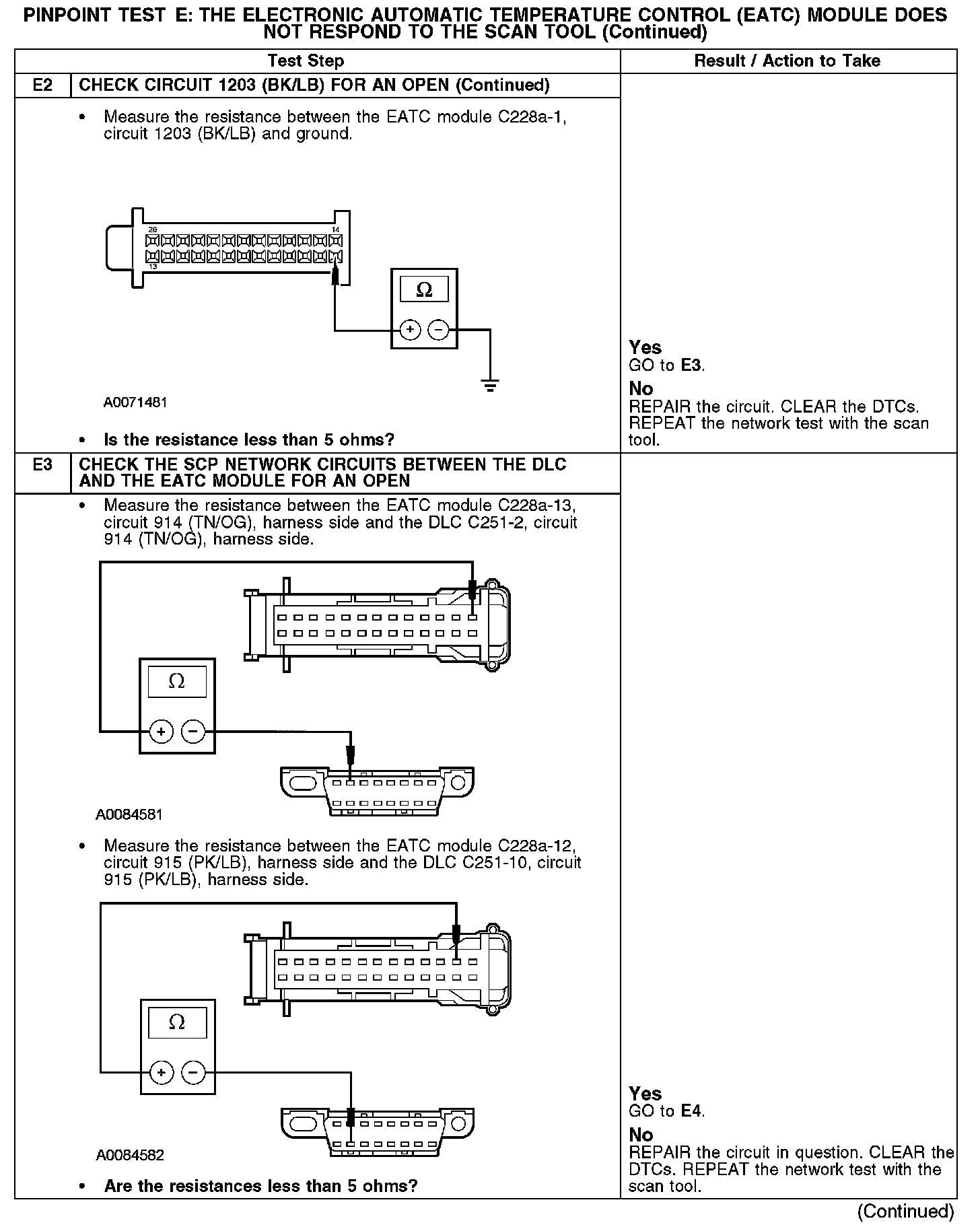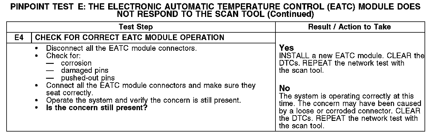 PINPOINT TEST E: THE ELECTRONIC AUTOMATIC TEMPERATURE CONTROL (EATC) MODULE DOES NOT RESPOND TO THE SCAN TOOL