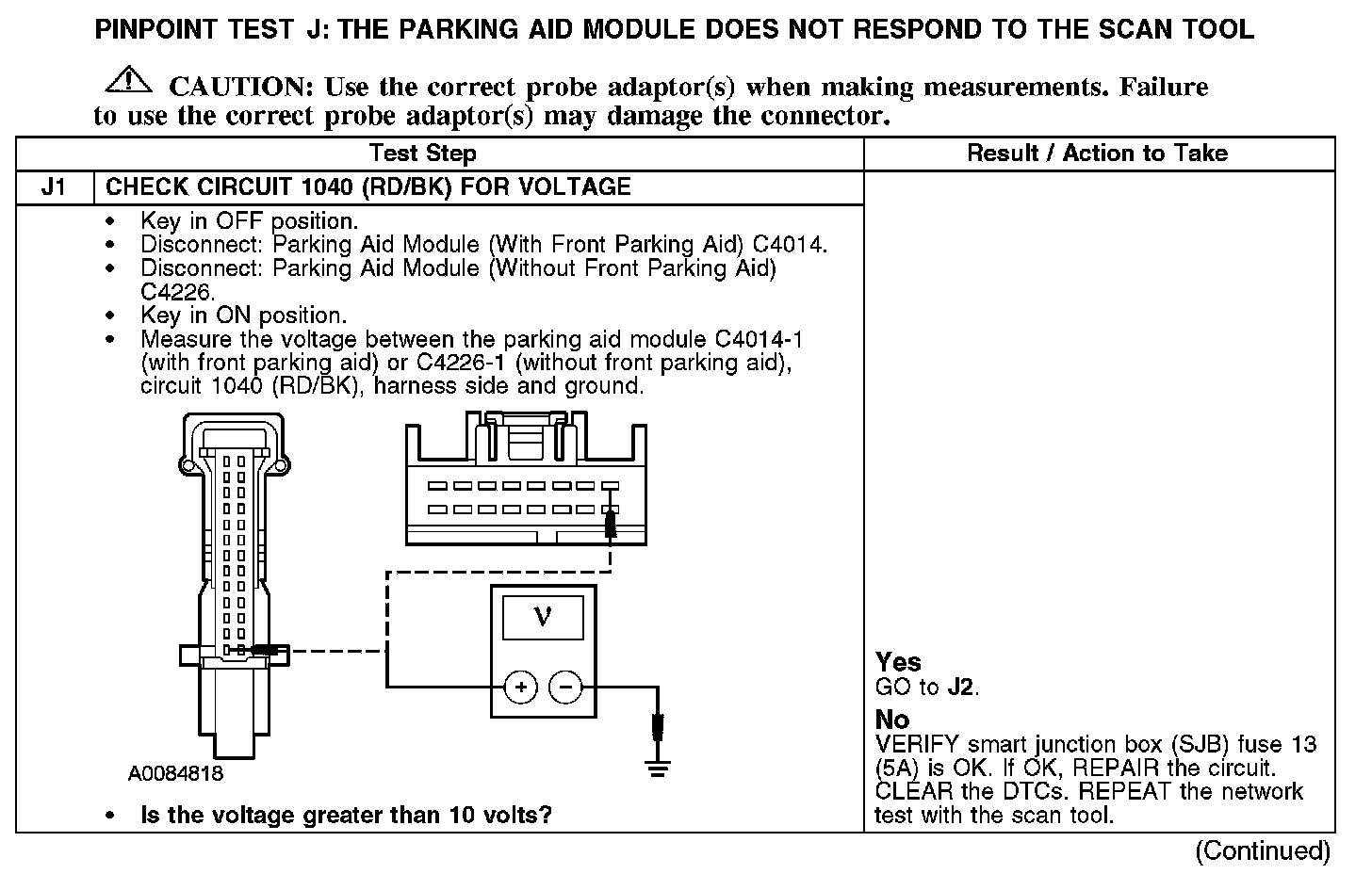 PINPOINT TEST J: THE PARKING AID MODULE DOES NOT RESPOND TO THE SCAN TOOLJ1:
