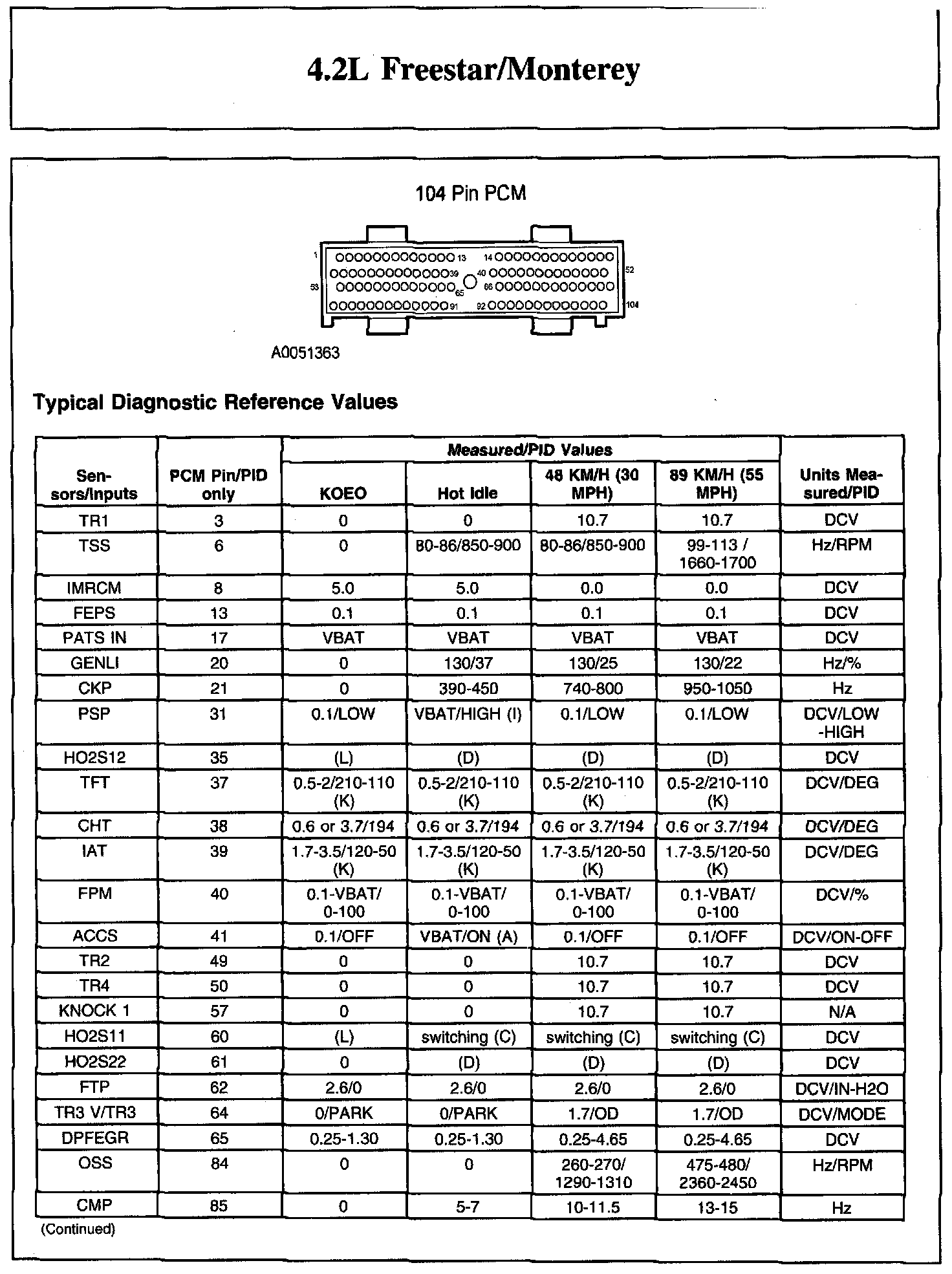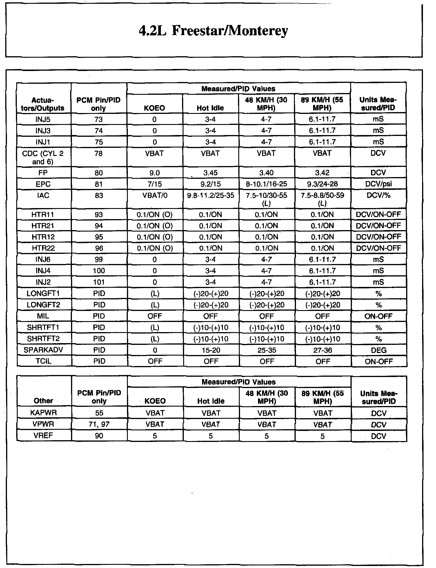 The Typical Diagnostic Reference Value Charts do not display fault parameter identifications (PIDs). These are PIDs which indicate a hard fault with the circuit. They display a value of YES or NO and are PIDs ending with the letter F.