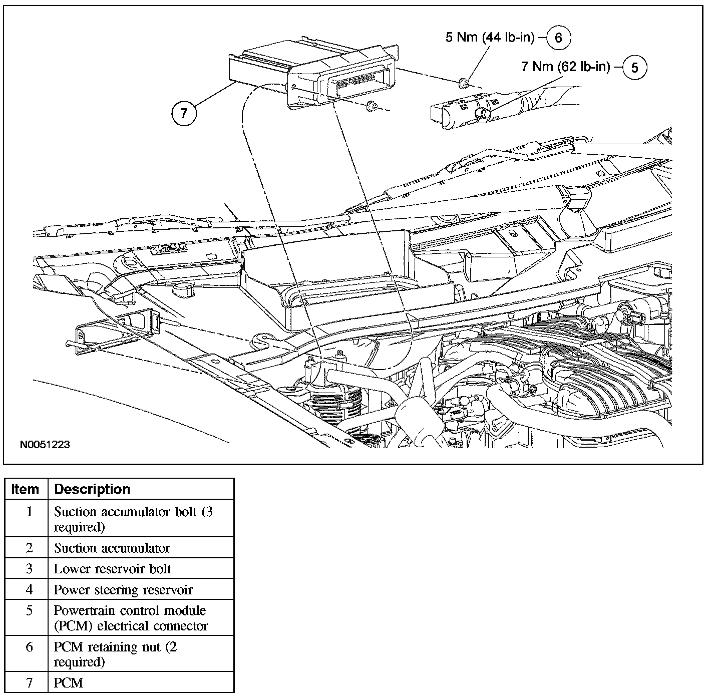 5. Remove the 2 PCM retaining nuts and the PCM.