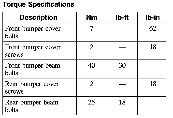 Torque Specifications: