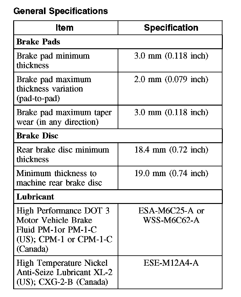 General Specifications, Rear