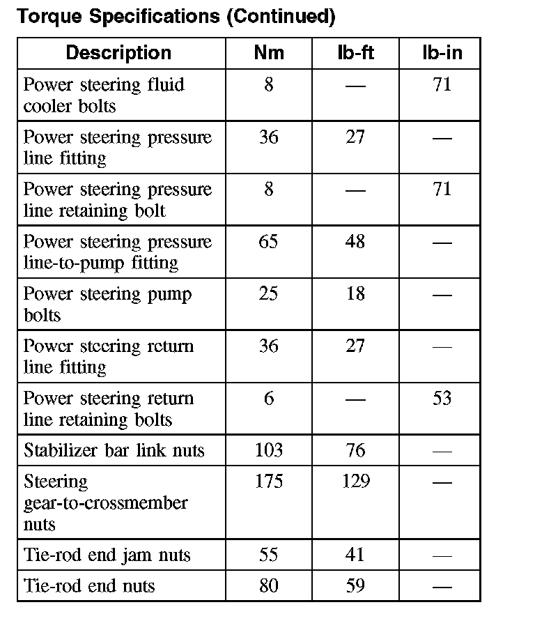 Torque Specifications (Part 2):
